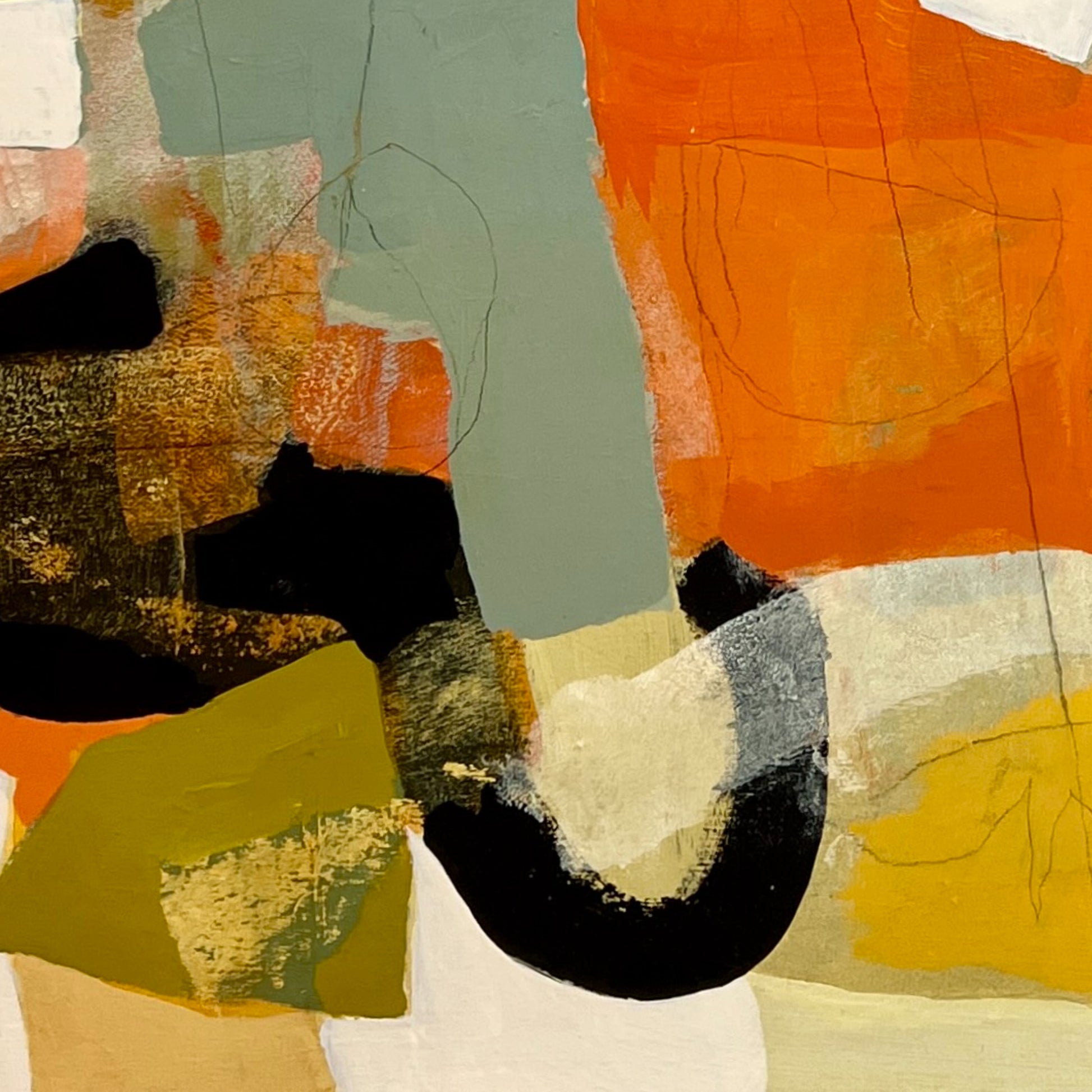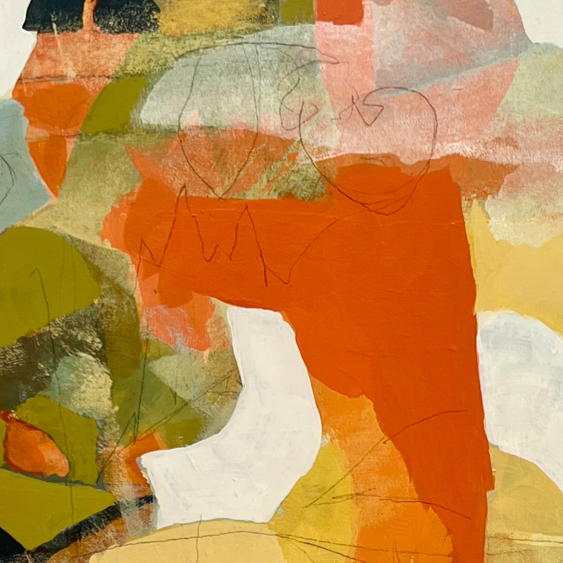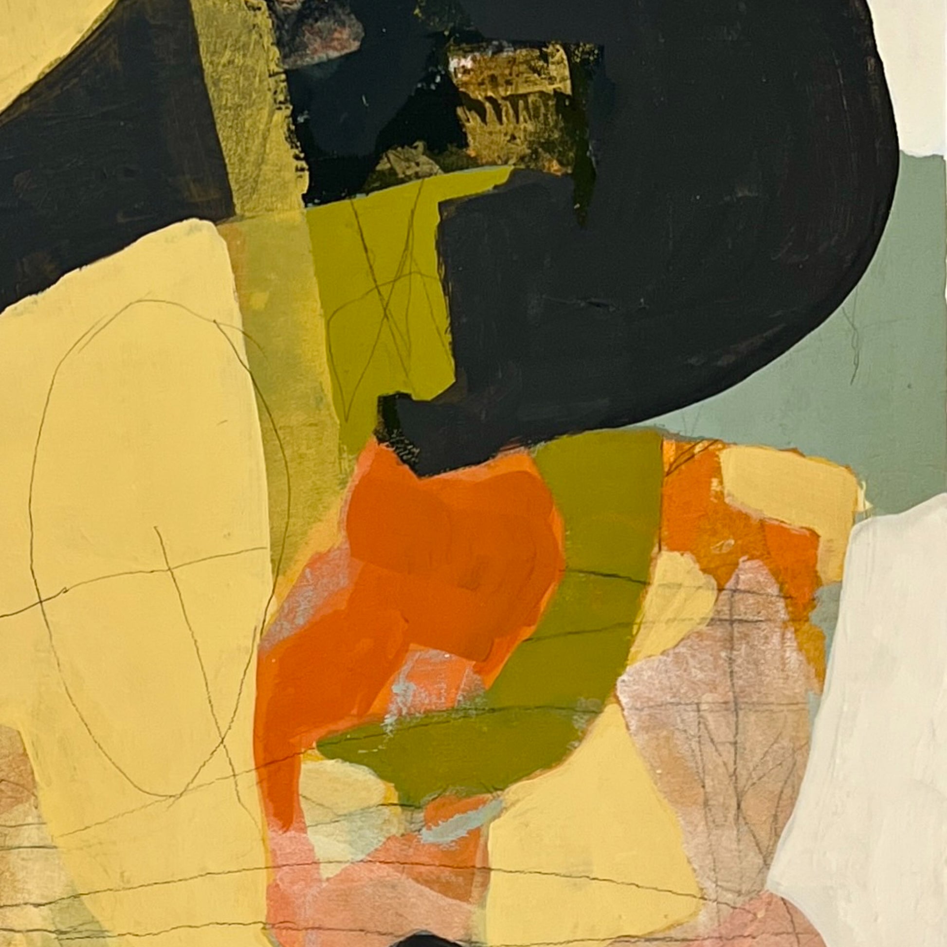 Cox’s practice is rooted in memory and impression, with each painting serving as a layered meditation on a moment, emotion, or lived experience. Working primarily in acrylic and collage, Cox approaches the canvas without a fixed plan. He builds depth and texture through an intuitive process of addition and subtraction, guided by memory and music. Music often triggers recollections that shape the composition, and as the work evolves, a specific memory gradually comes into focus. Cox continues to refine the surface until the emotional truth of the moment feels fully realized. His carefully chosen titles offer context while leaving space for open interpretation.