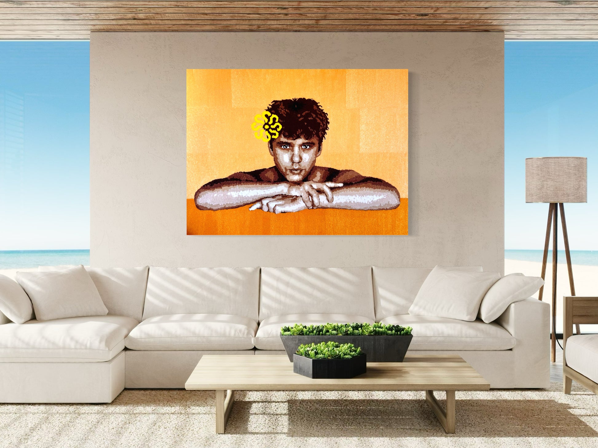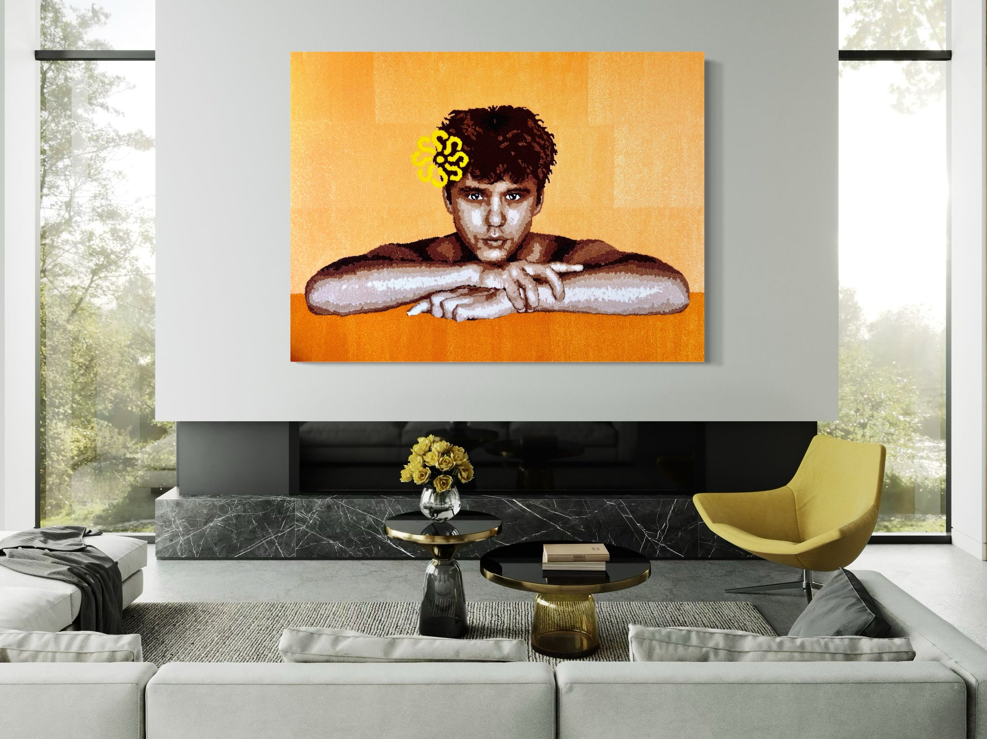 This handmade textile work is a faithful recreation of the artist’s original piece 'Do You Smell Fumes?'. Each version is crafted from scratch, preserving the spirit and technique of the original. Please contact us if you require a different size.
