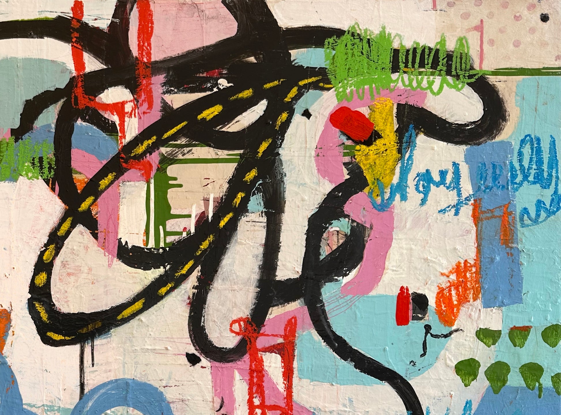 Christiane Corcelle is a French-American mixed media artist based in Massachusetts. Her intuitive, layered practice spans painting, printmaking, collage, and de-collage, building richly textured surfaces that invite close exploration. Guided by curiosity and openness to process, she transforms color, shape, and found materials into works that are both dynamic and contemplative.