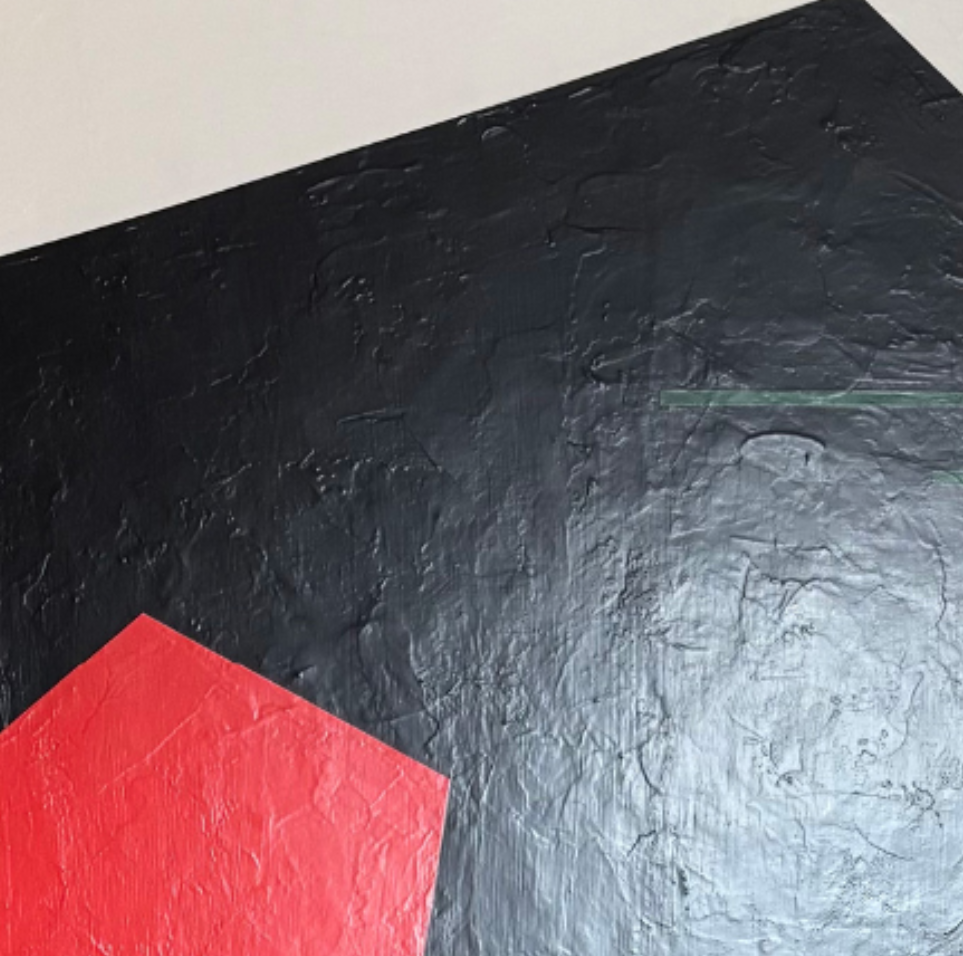 Each piece begins with a digital mapping process, where Sweeney plots city blocks using Apple Maps as a structural guide. She then builds the surface with repeated layers of soft-body acrylics, creating depth, color, and a subtle sculptural quality. The process is slow and meditative, allowing compositions to shift gradually, sometimes reflecting the density of an urban core, other times opening into looser, more organic forms.