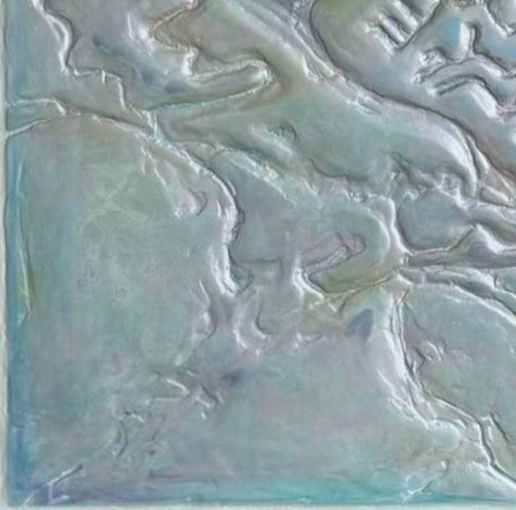 Her paintings transform maps into a poetic language of texture and rhythm, evoking both the excitement of exploring new places and the intimacy of finding meaning within them. Her work has been shown throughout the San Francisco Bay Area, including the Triton Museum of Art, the Pacific Heights Gallery, and the Harry Williams Creative Gallery, and is held in private collections around the world.