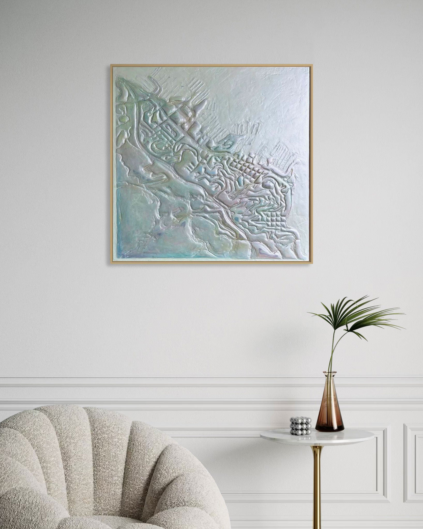 Acrylic on wooden panel, floater frame
