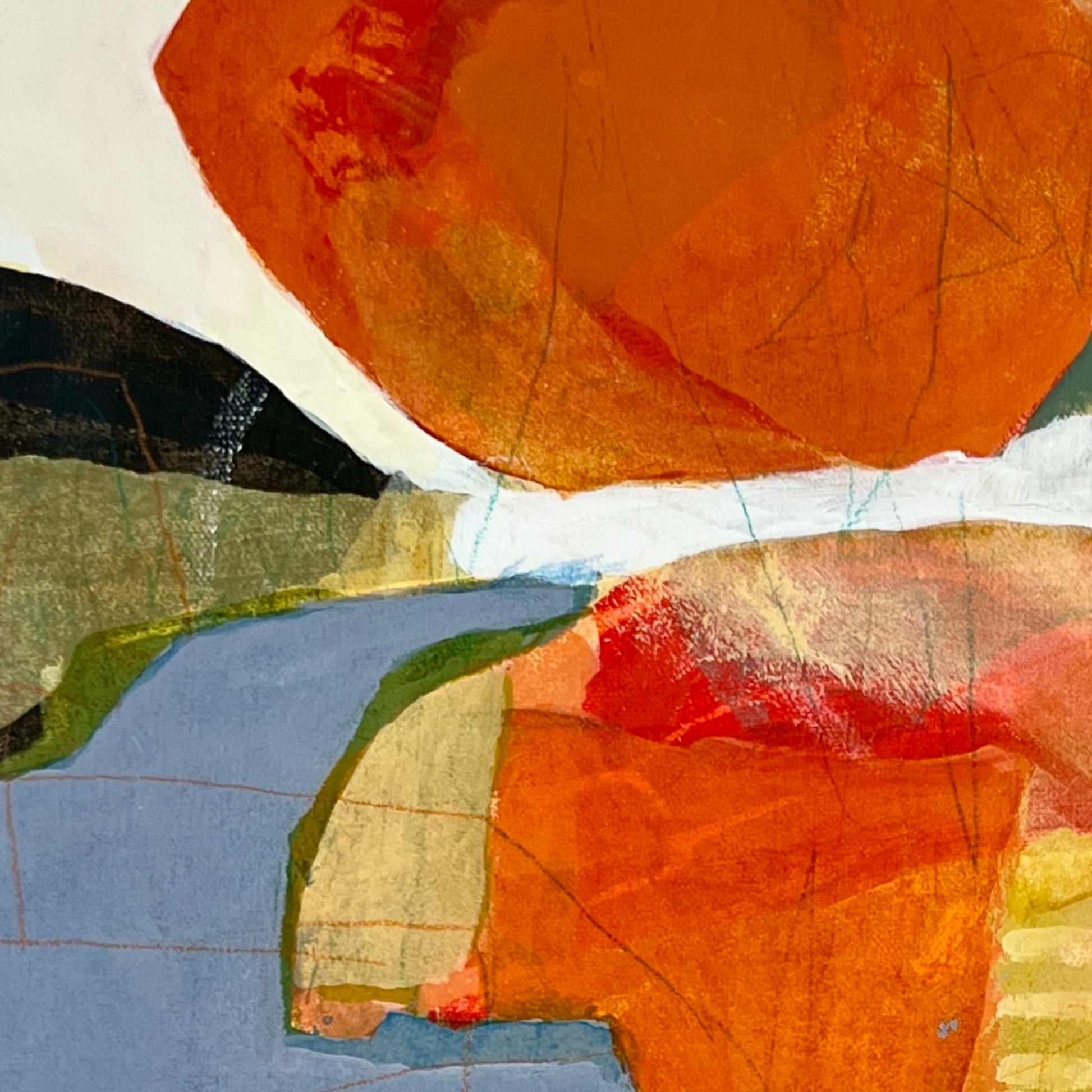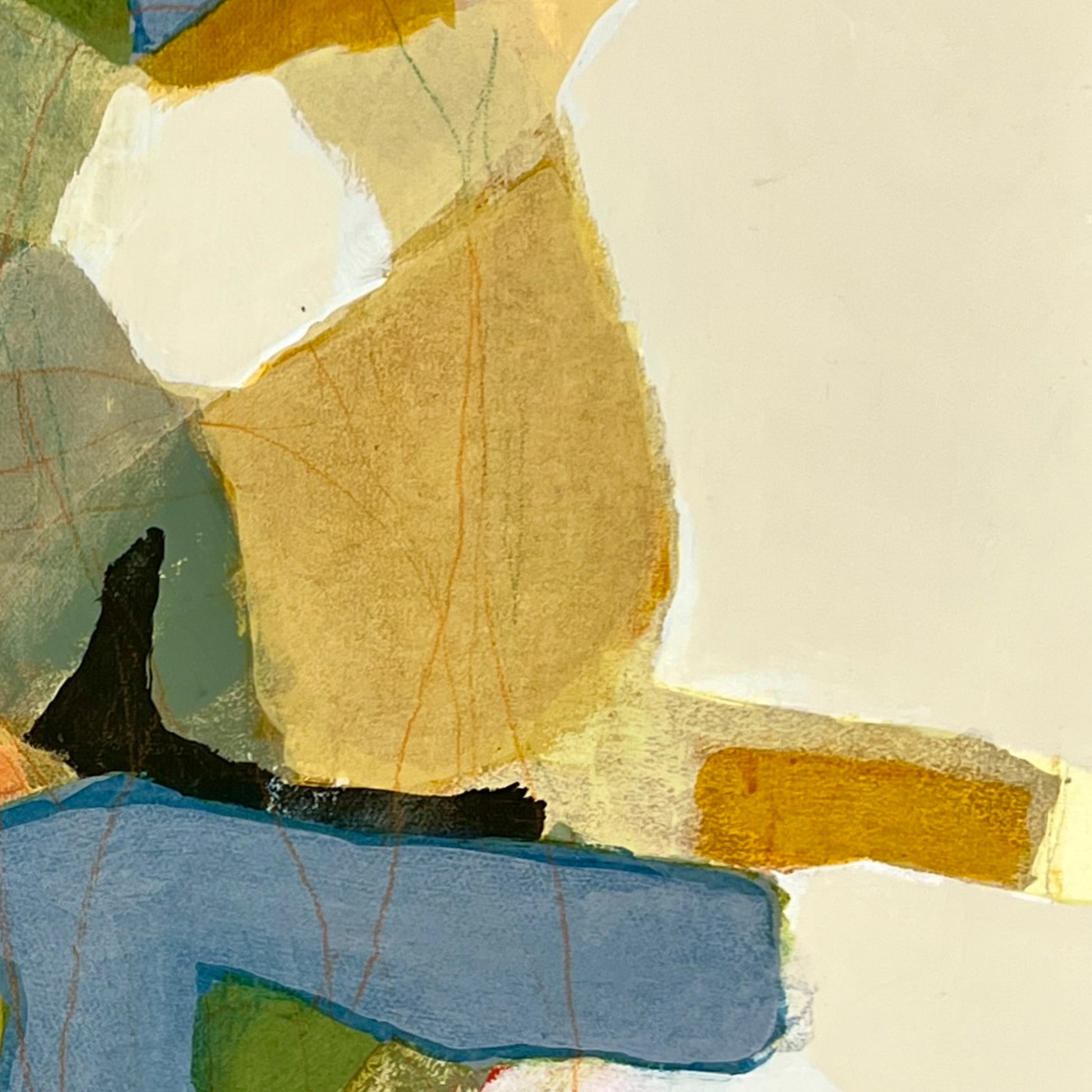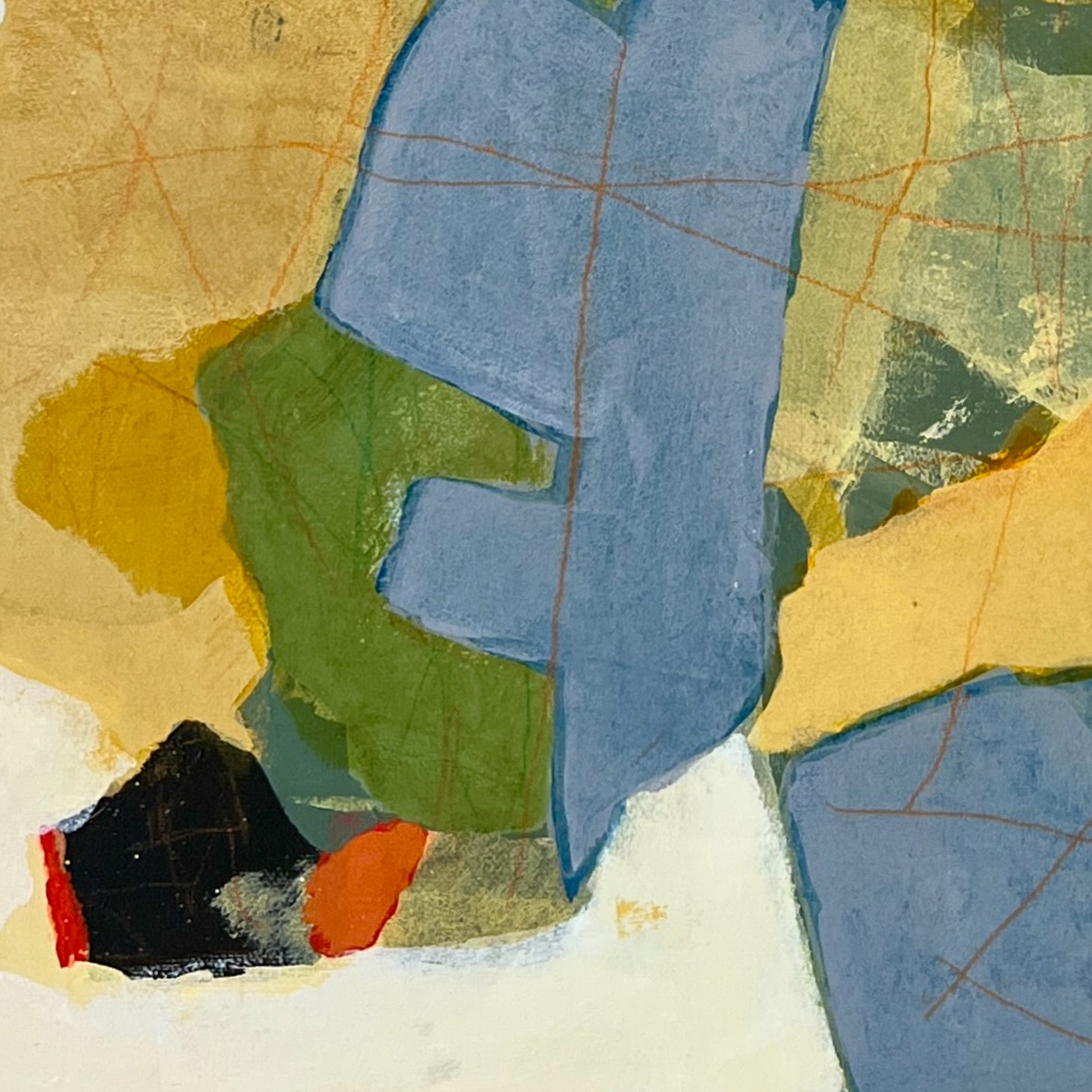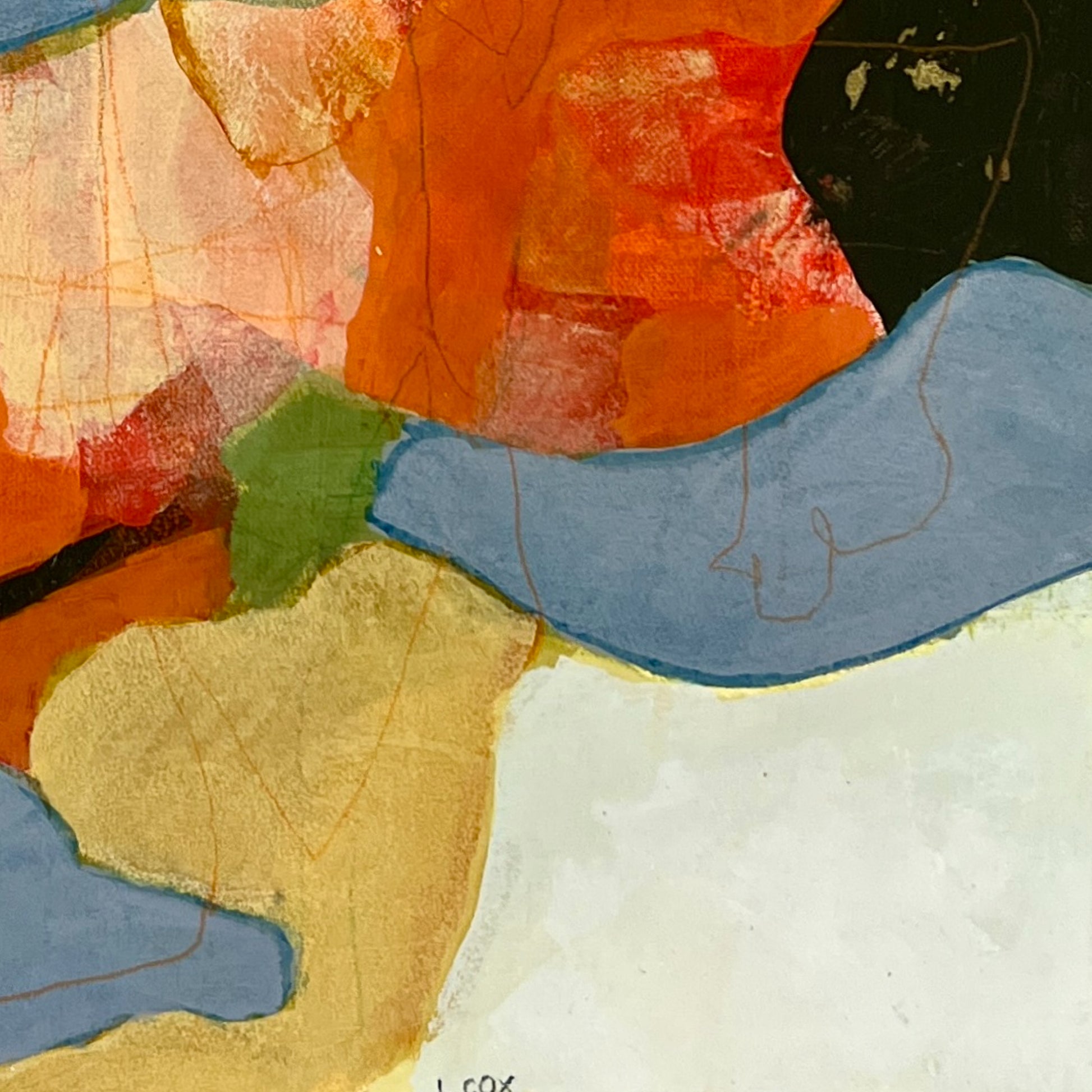 Cox’s practice is rooted in memory and impression, with each painting serving as a layered meditation on a moment, emotion, or lived experience. Working primarily in acrylic and collage, Cox approaches the canvas without a fixed plan. He builds depth and texture through an intuitive process of addition and subtraction, guided by memory and music. Music often triggers recollections that shape the composition, and as the work evolves, a specific memory gradually comes into focus. Cox continues to refine the surface until the emotional truth of the moment feels fully realized. His carefully chosen titles offer context while leaving space for open interpretation.