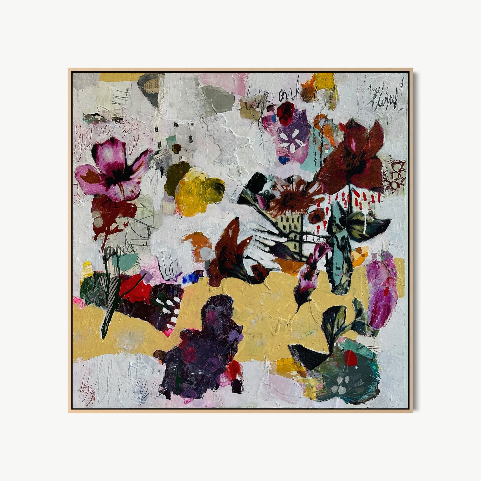 Christiane Corcelle is a French-American mixed media artist based in Massachusetts. Her intuitive, layered practice spans painting, printmaking, collage, and de-collage, building richly textured surfaces that invite close exploration. Guided by curiosity and openness to process, she transforms color, shape, and found materials into works that are both dynamic and contemplative.