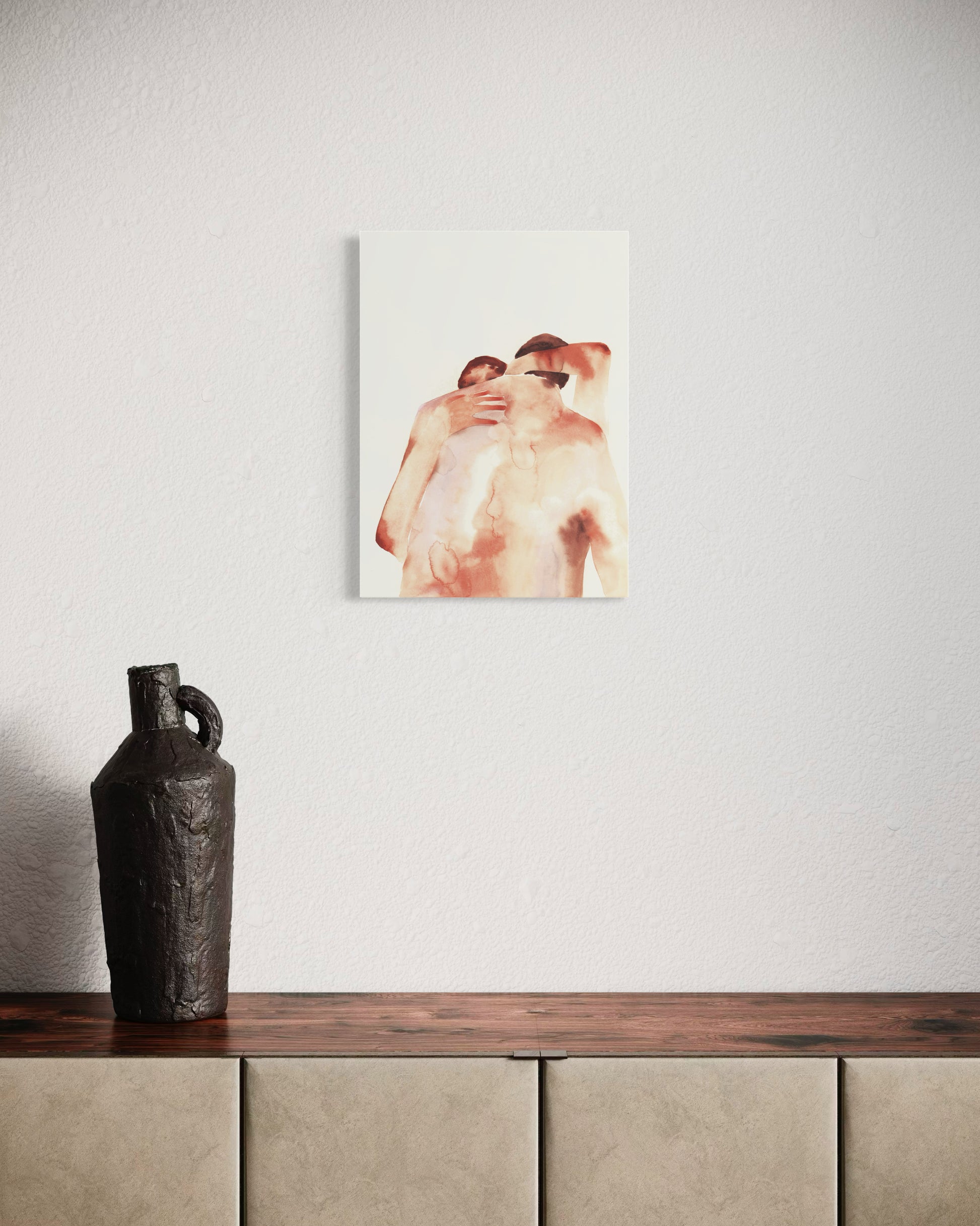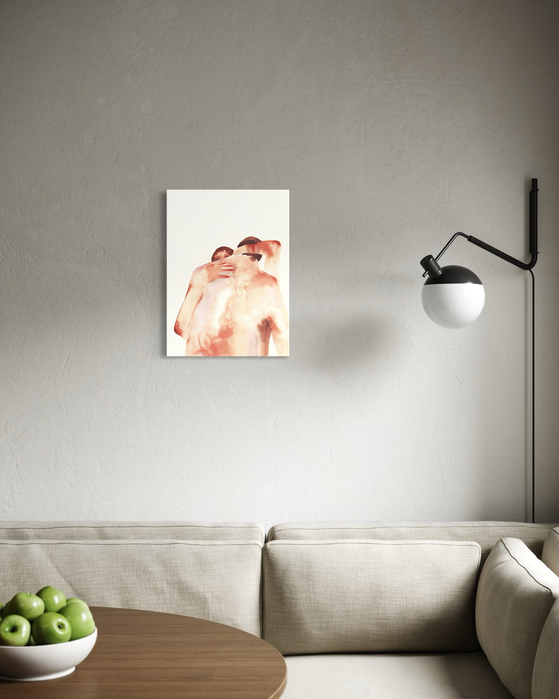 There is something universal about an embrace, and Cuddemi knows it. She keeps the details spare - no faces, no setting - so what remains is pure feeling. She paints the hug the way one remembers it: not in sharp detail, but in warmth and weight, the watercolor softening the edges until two figures become, briefly, one.
