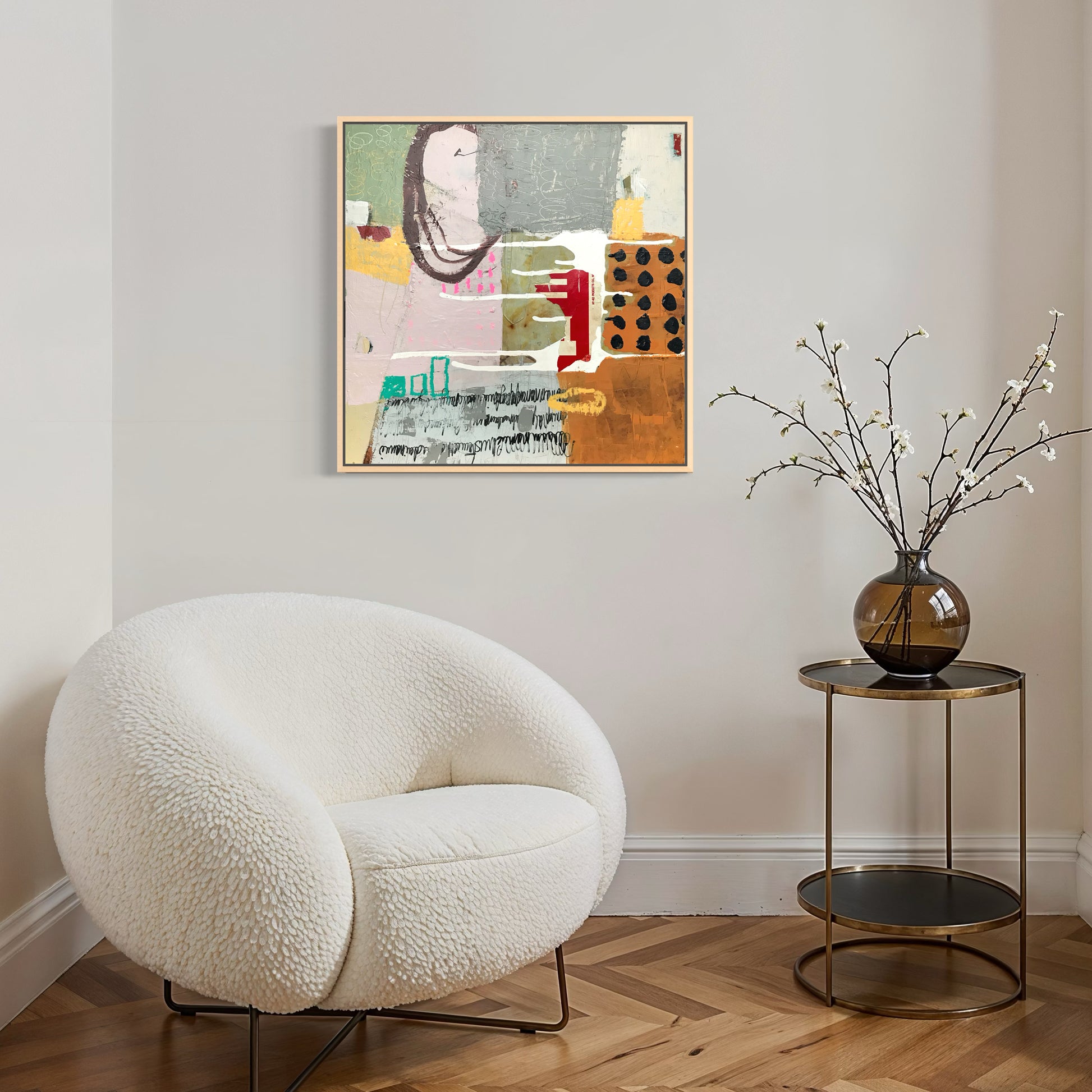 Mixed media on board (wood floater frame)