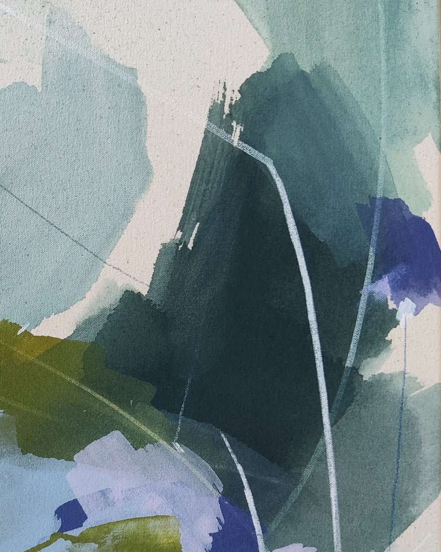 Her practice is guided by an intuitive process of mark-making, producing works that range from large-scale, gestural compositions to more intimate paintings. Through layered applications of color, Matos combines expressive, physical gestures with moments of restraint and carefully considered abstract imagery, allowing each work to evolve organically through the act of making.