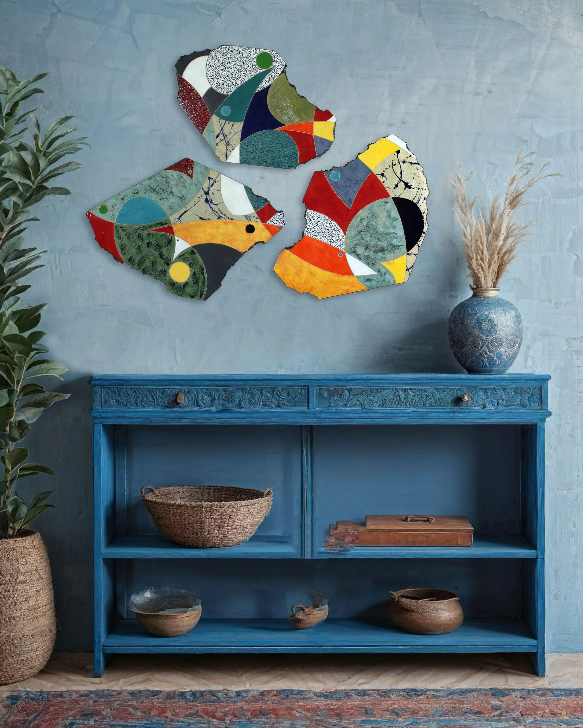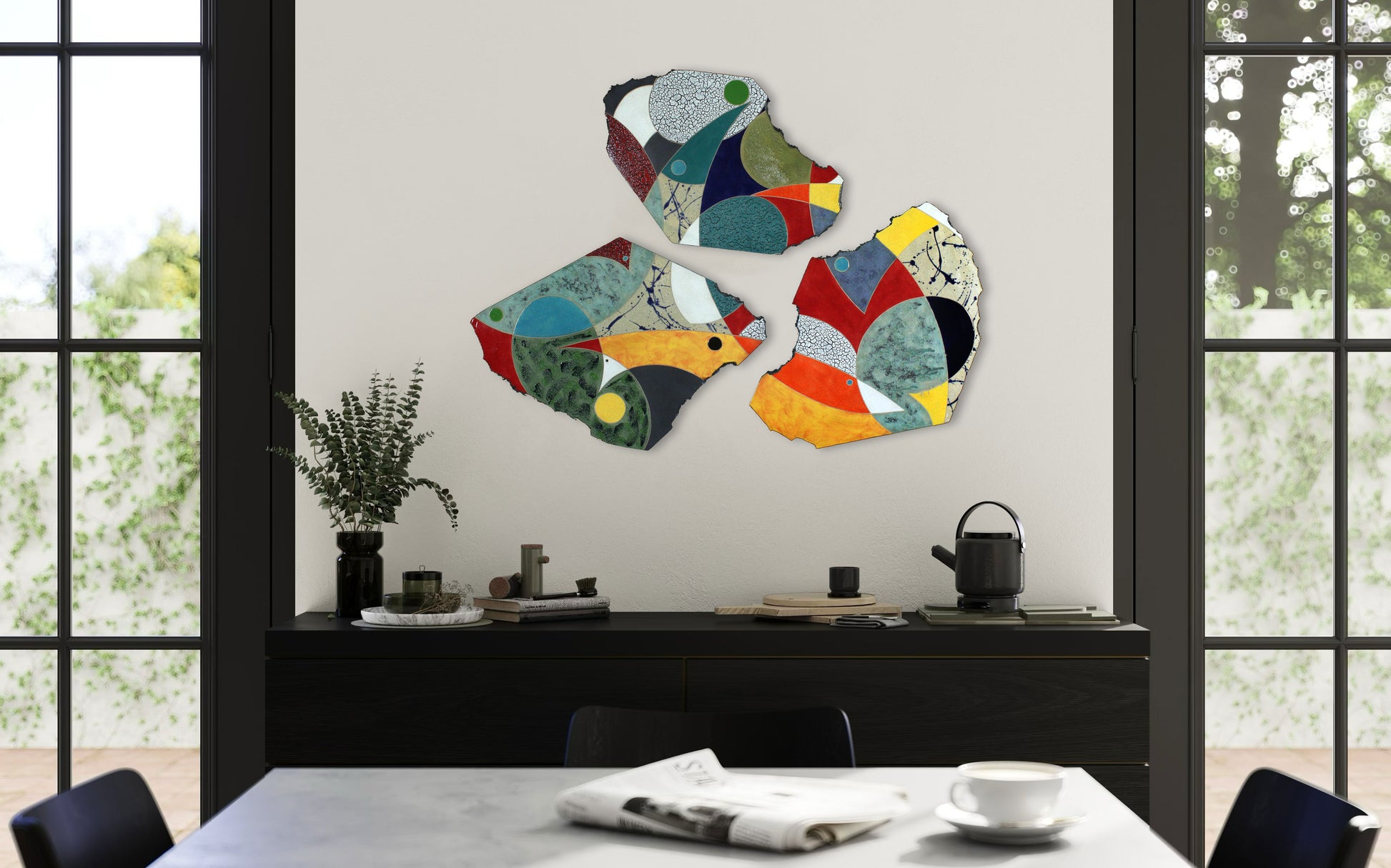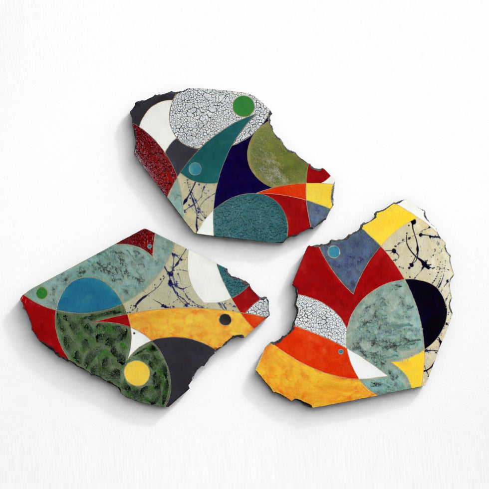 Inspired by Joan Miró, Pablo Picasso, Wassily Kandinsky, Piet Mondrian, and Jackson Pollock, Gustavson’s surfaces often feature controlled dripping and expressive movement, translating the energy of abstract painting into fired clay.