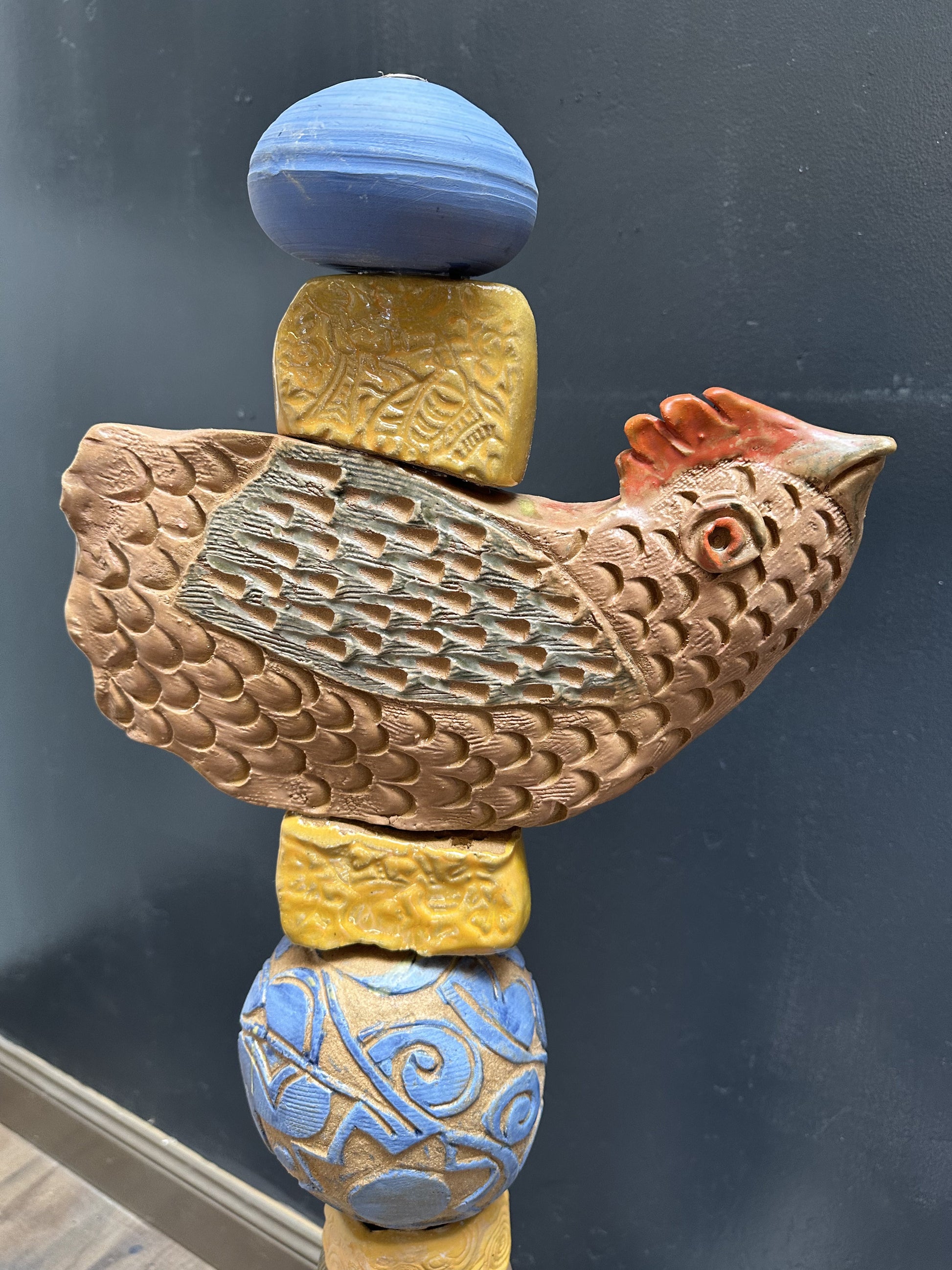 In recent years, Zimmerman has returned to his earliest artistic passion, clay, expanding his practice into the sculptural realm with his Garden Totems. These vertically stacked ceramic works are hand-built and individually glazed, each element supporting the next in a spontaneous, intuitive process. Rooted in his pottery background from Venice Beach in the 1960s and 70s, the totems translate his painterly sensibility into three dimensions, bringing the same sense of movement, humor, and joie de vivre into the garden or interior space.