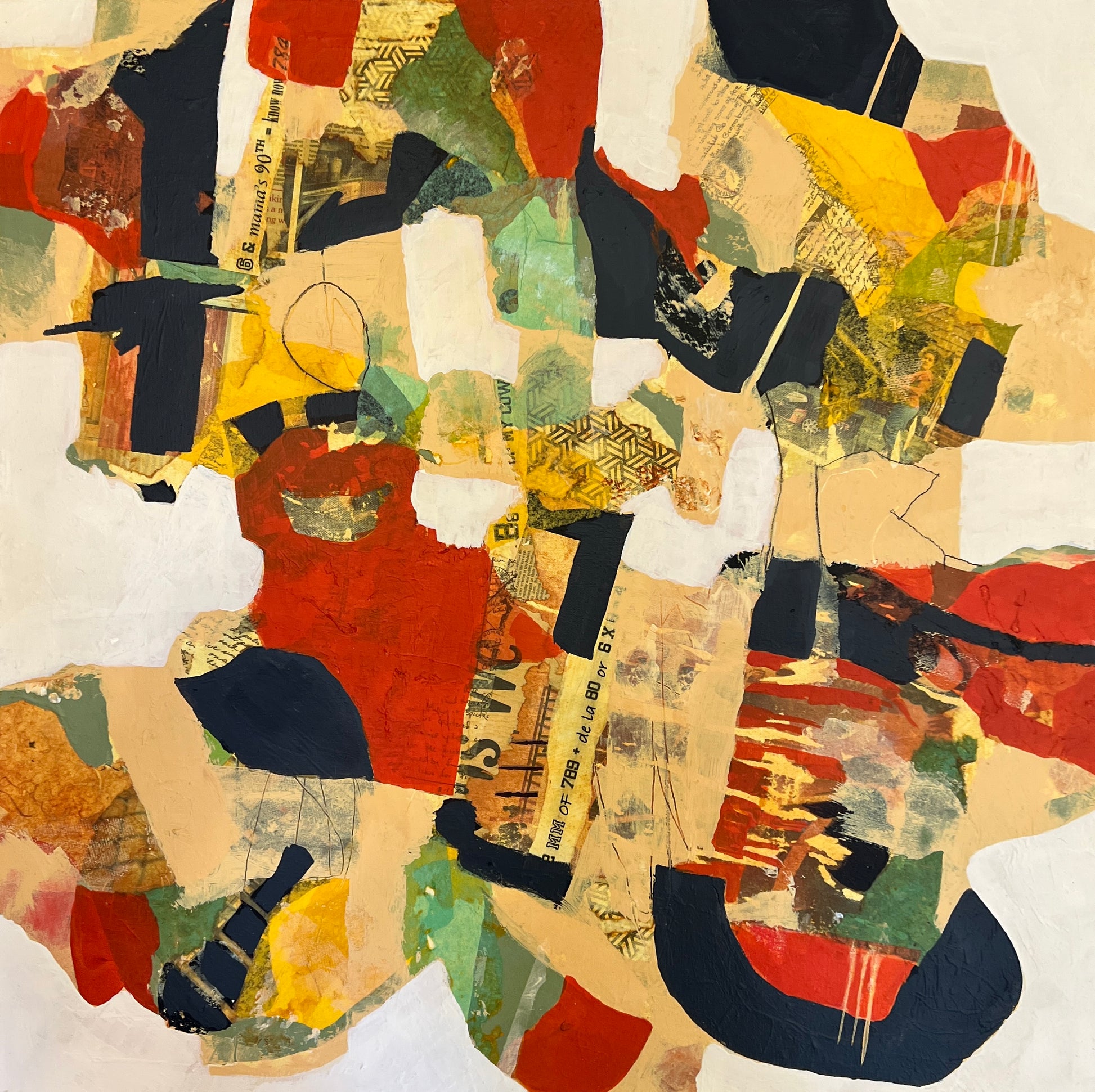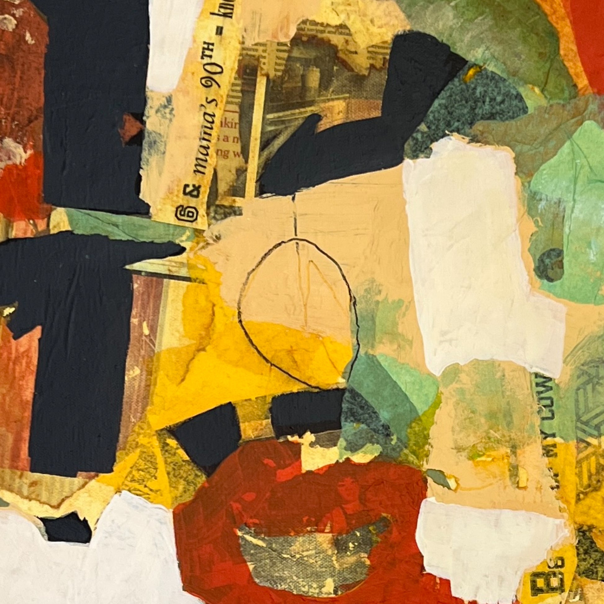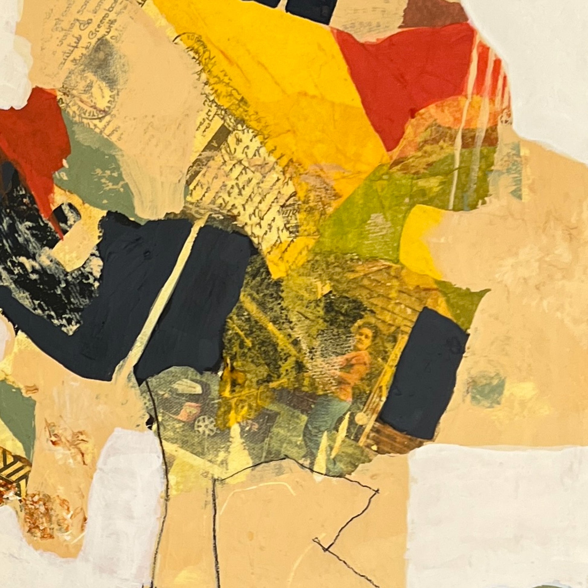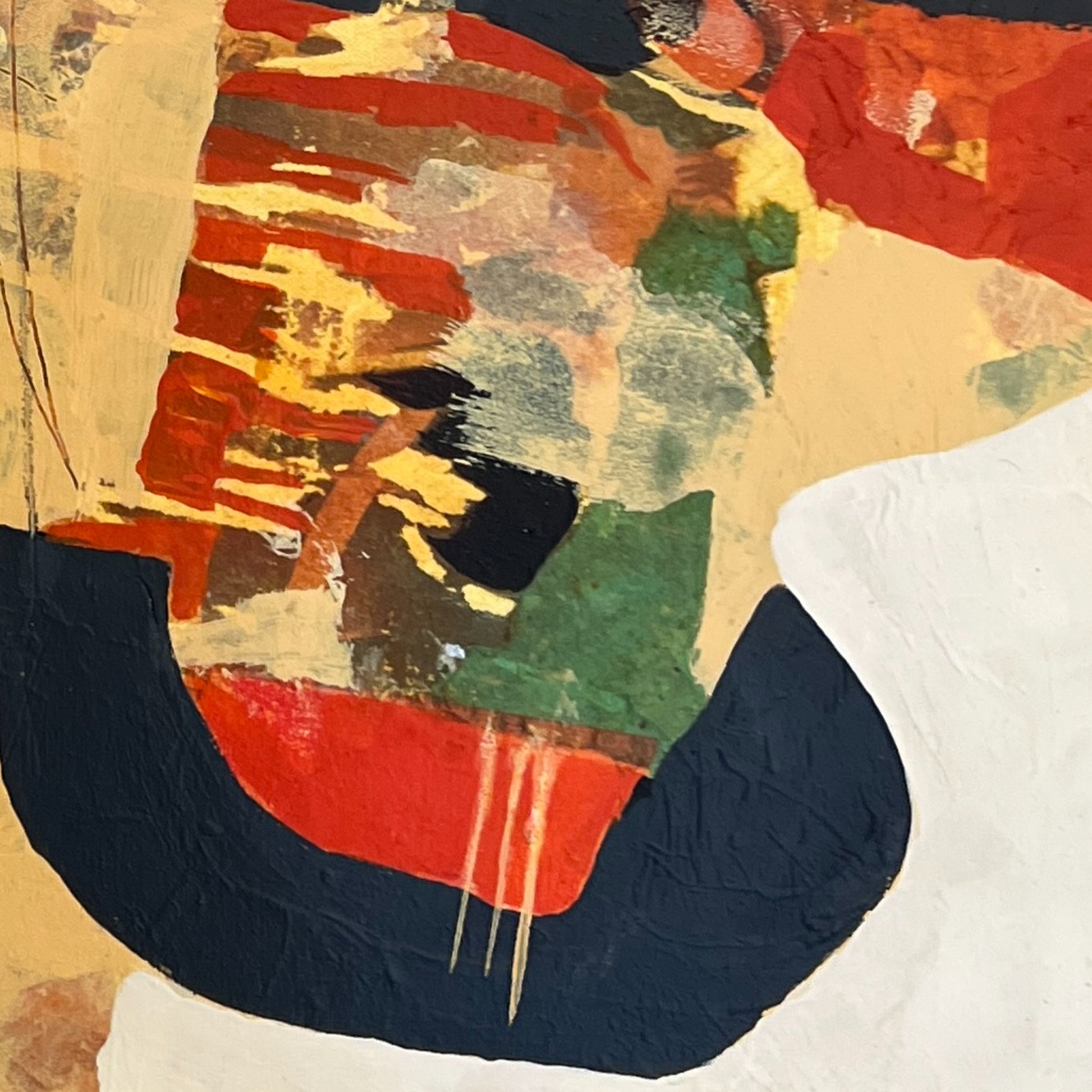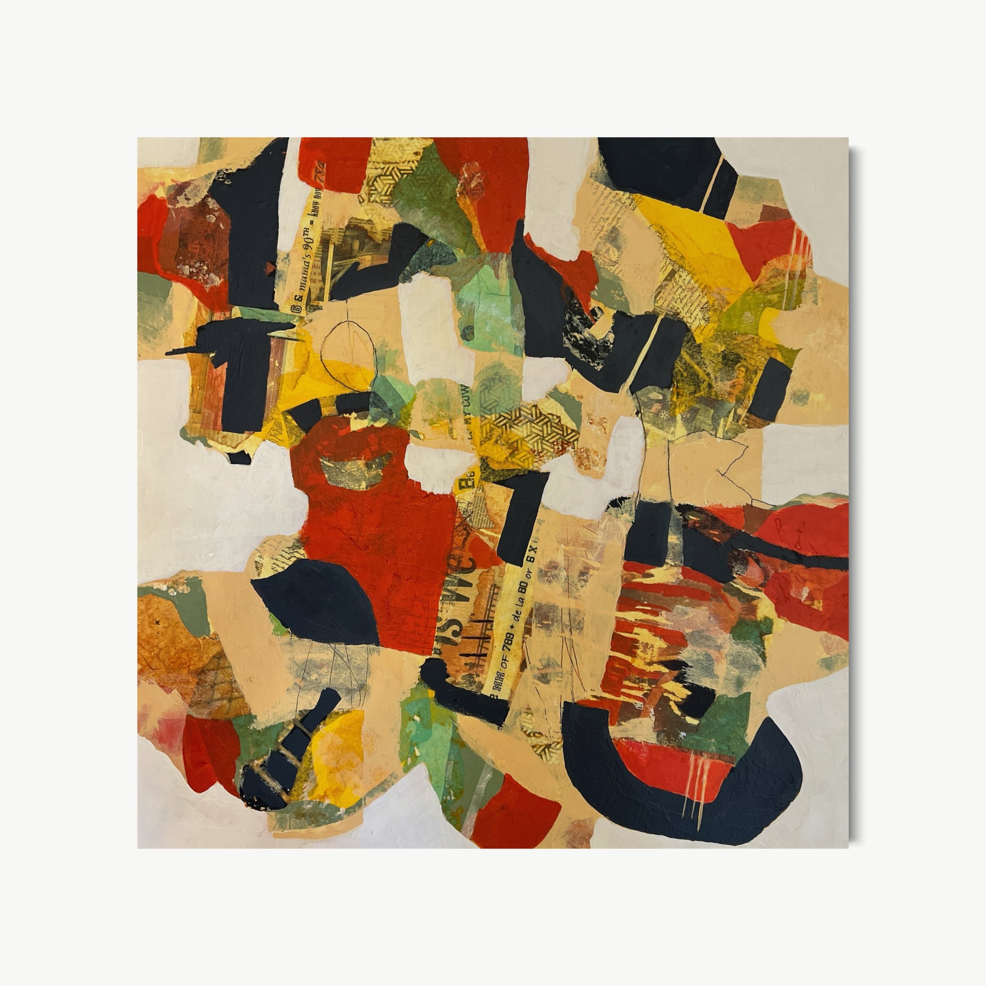 Cox’s practice is rooted in memory and impression, with each painting serving as a layered meditation on a moment, emotion, or lived experience. Working primarily in acrylic and collage, Cox approaches the canvas without a fixed plan. He builds depth and texture through an intuitive process of addition and subtraction, guided by memory and music. Music often triggers recollections that shape the composition, and as the work evolves, a specific memory gradually comes into focus. Cox continues to refine the surface until the emotional truth of the moment feels fully realized. His carefully chosen titles offer context while leaving space for open interpretation.