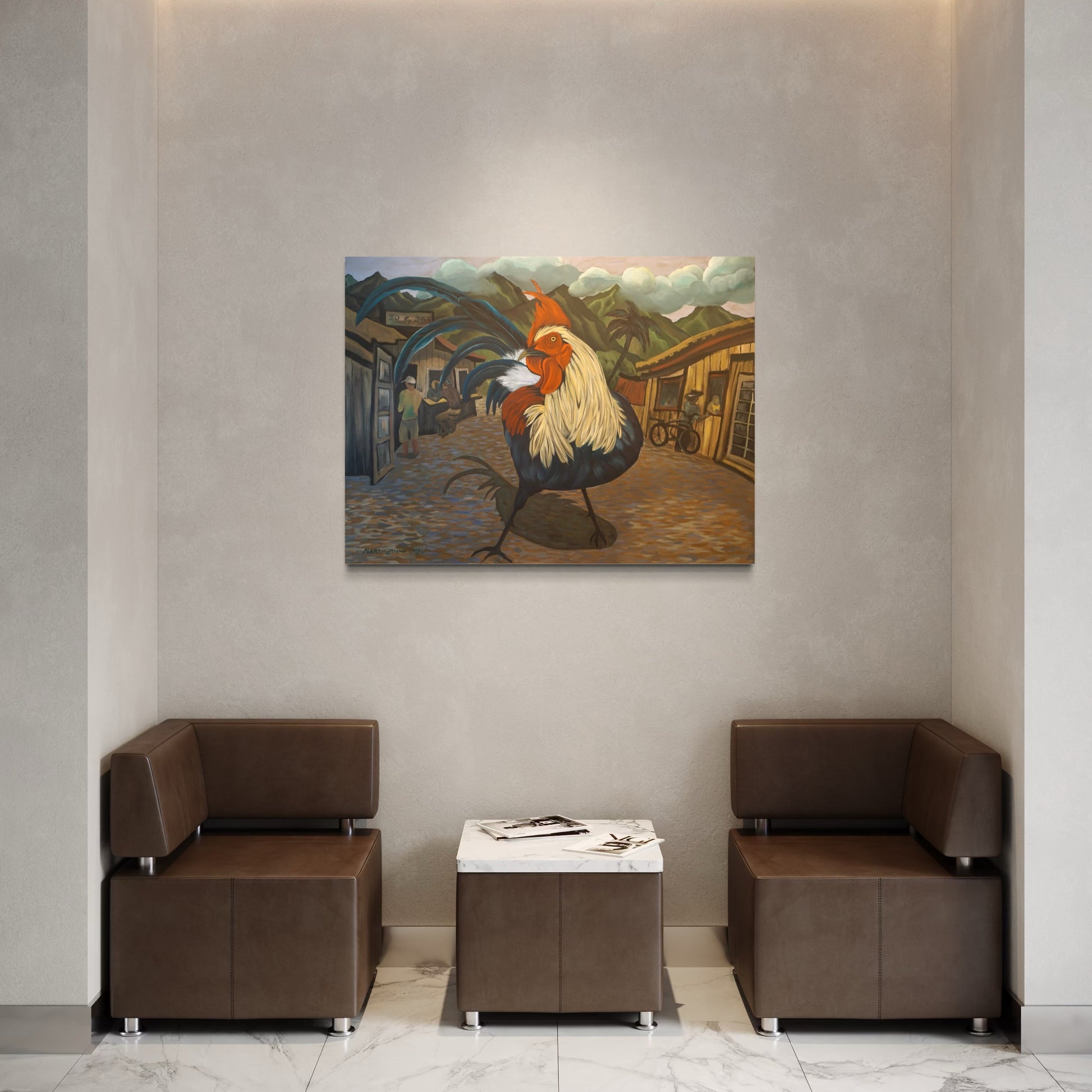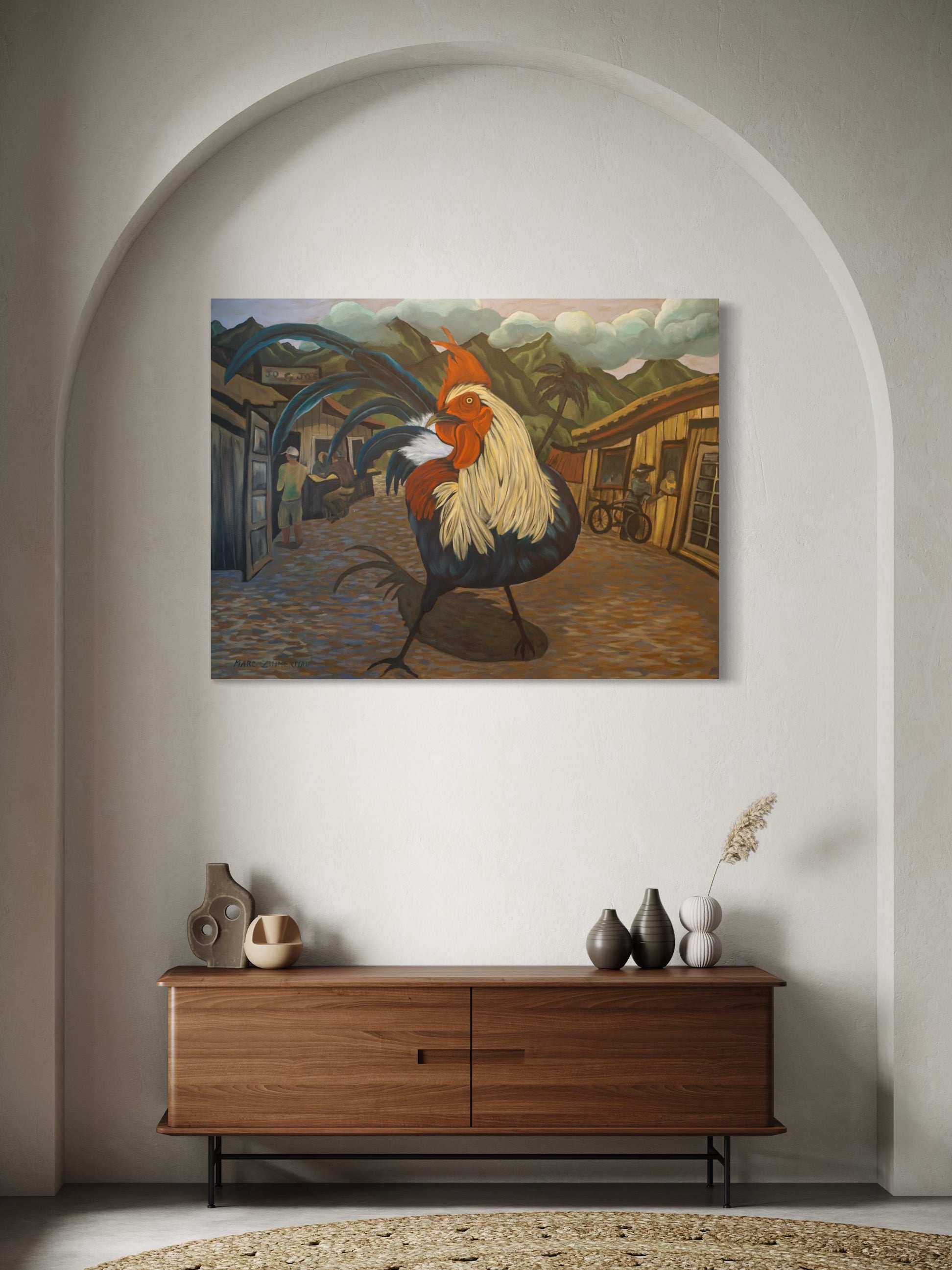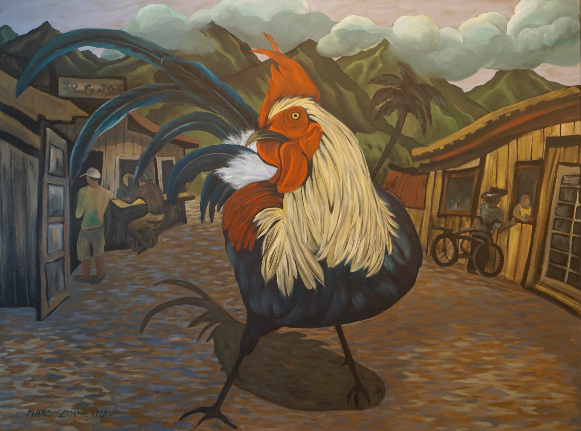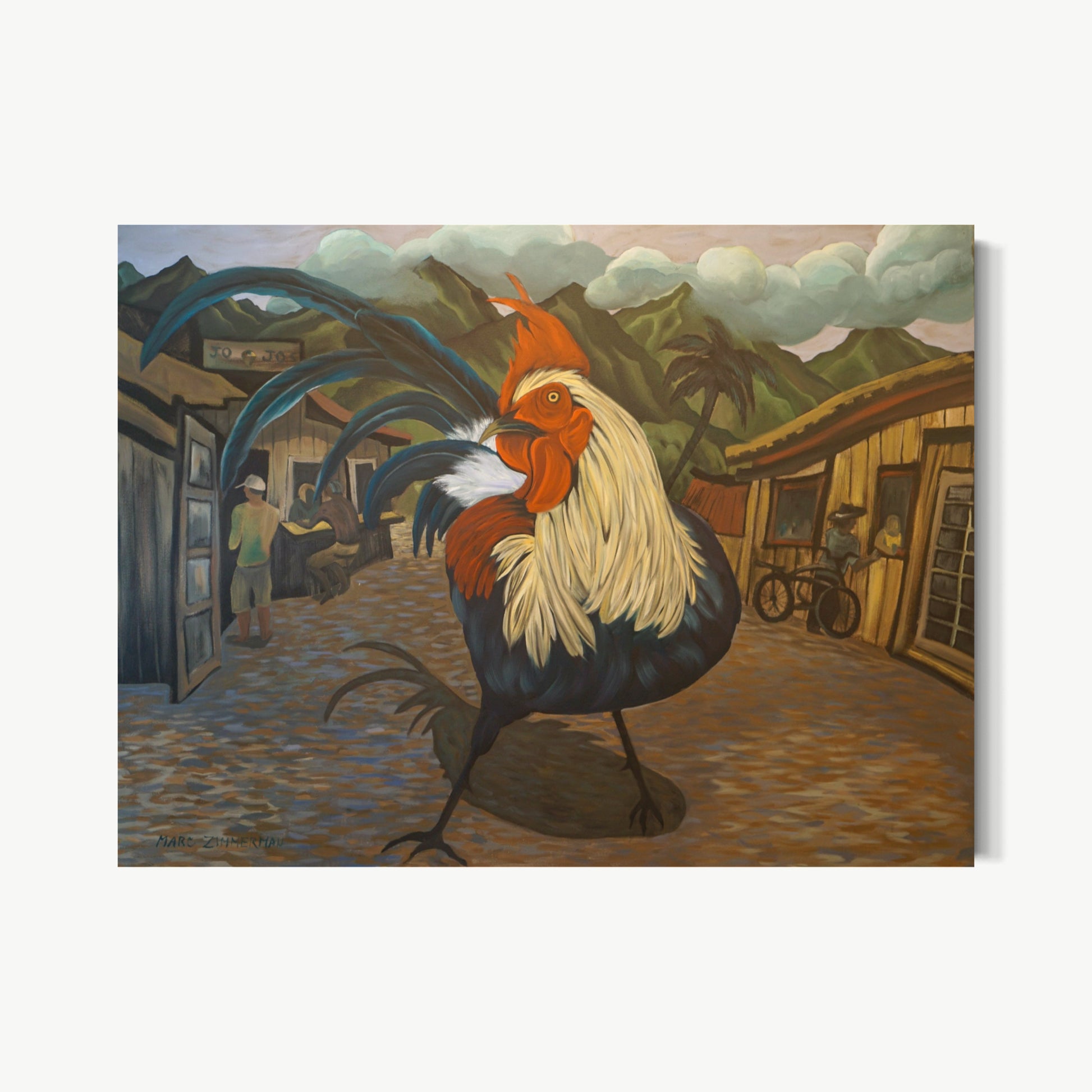 Zimmerman’s distinctive vocabulary was shaped early through his work in woodcut printmaking, which instilled the crisp edges and compositional clarity that continue to anchor his paintings today. His lush, immersive environments draw inspiration from the dreamlike worlds of Henri Rousseau and Paul Gauguin, while extended periods living and painting in Kauai, Hawaii, as well as time in Mexico and Europe, infused his work with the saturated light and rhythmic vitality that define his celebrated Jungle and Tropical Fantasy Floral series.