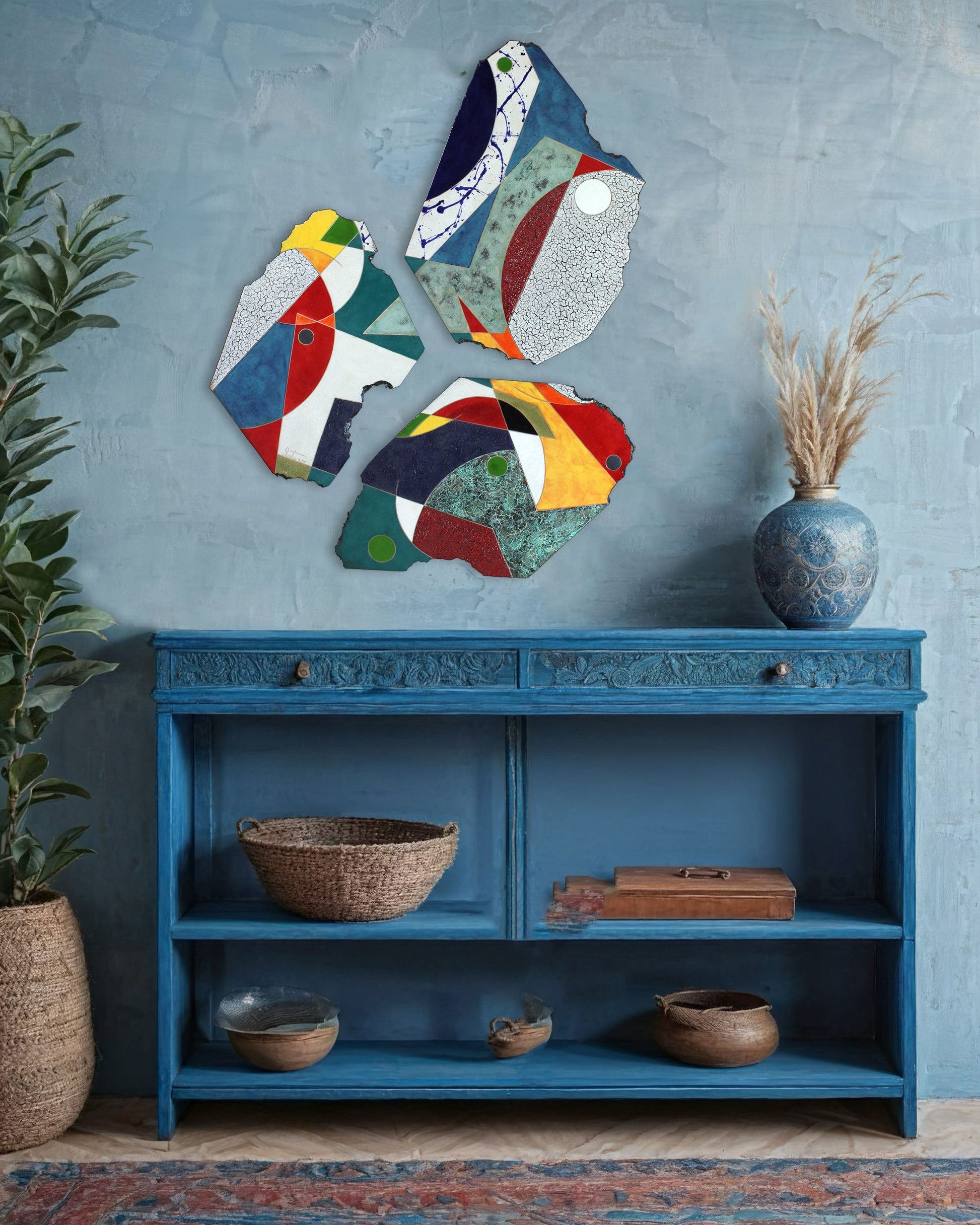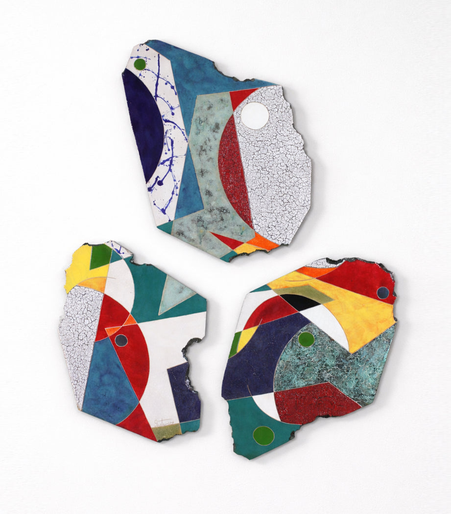 Inspired by Joan Miró, Pablo Picasso, Wassily Kandinsky, Piet Mondrian, and Jackson Pollock, Gustavson’s surfaces often feature controlled dripping and expressive movement, translating the energy of abstract painting into fired clay.