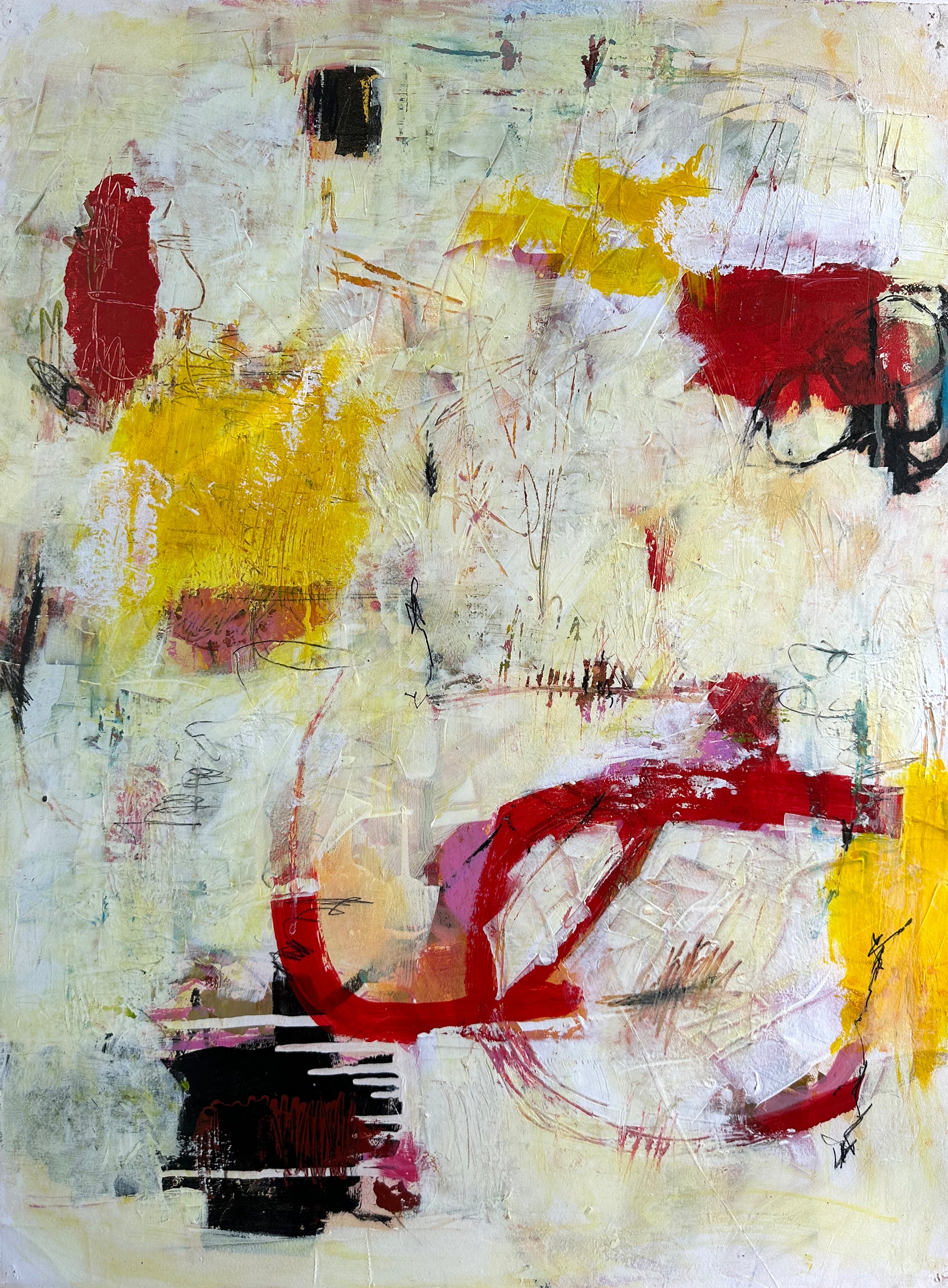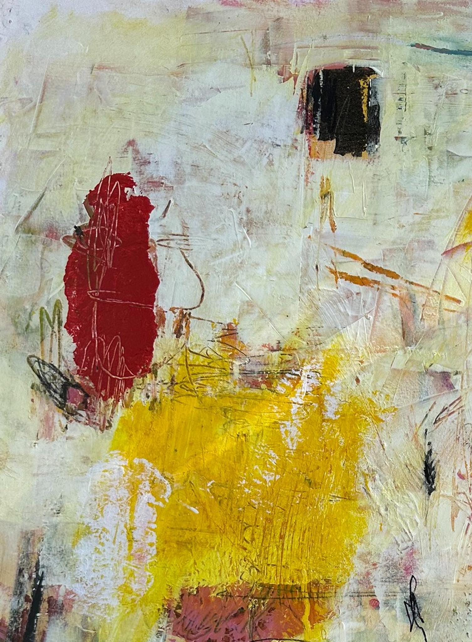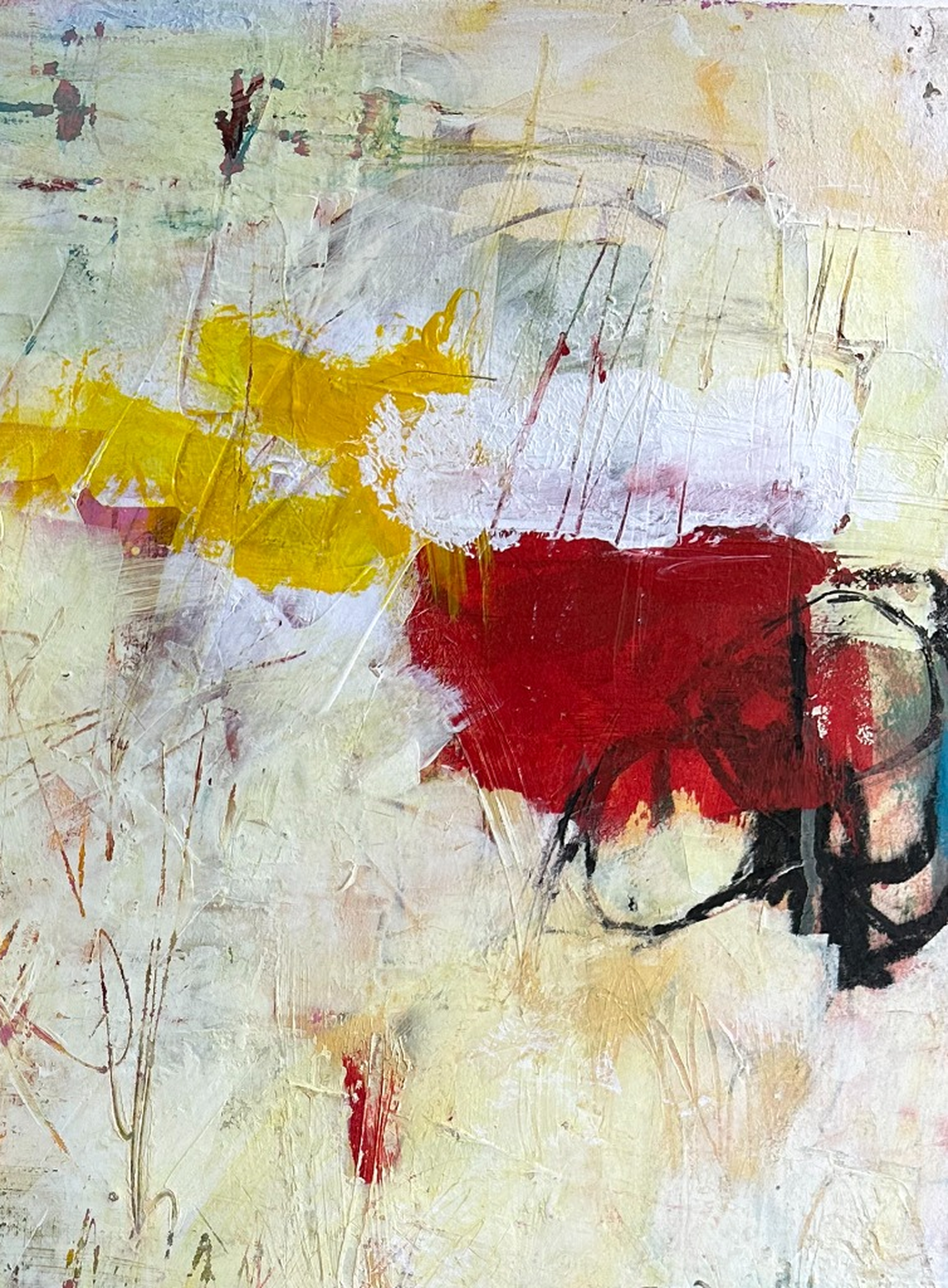 Christiane Corcelle is a French-American mixed media artist based in Massachusetts. Her intuitive, layered practice spans painting, printmaking, collage, and de-collage, building richly textured surfaces that invite close exploration. Guided by curiosity and openness to process, she transforms color, shape, and found materials into works that are both dynamic and contemplative.