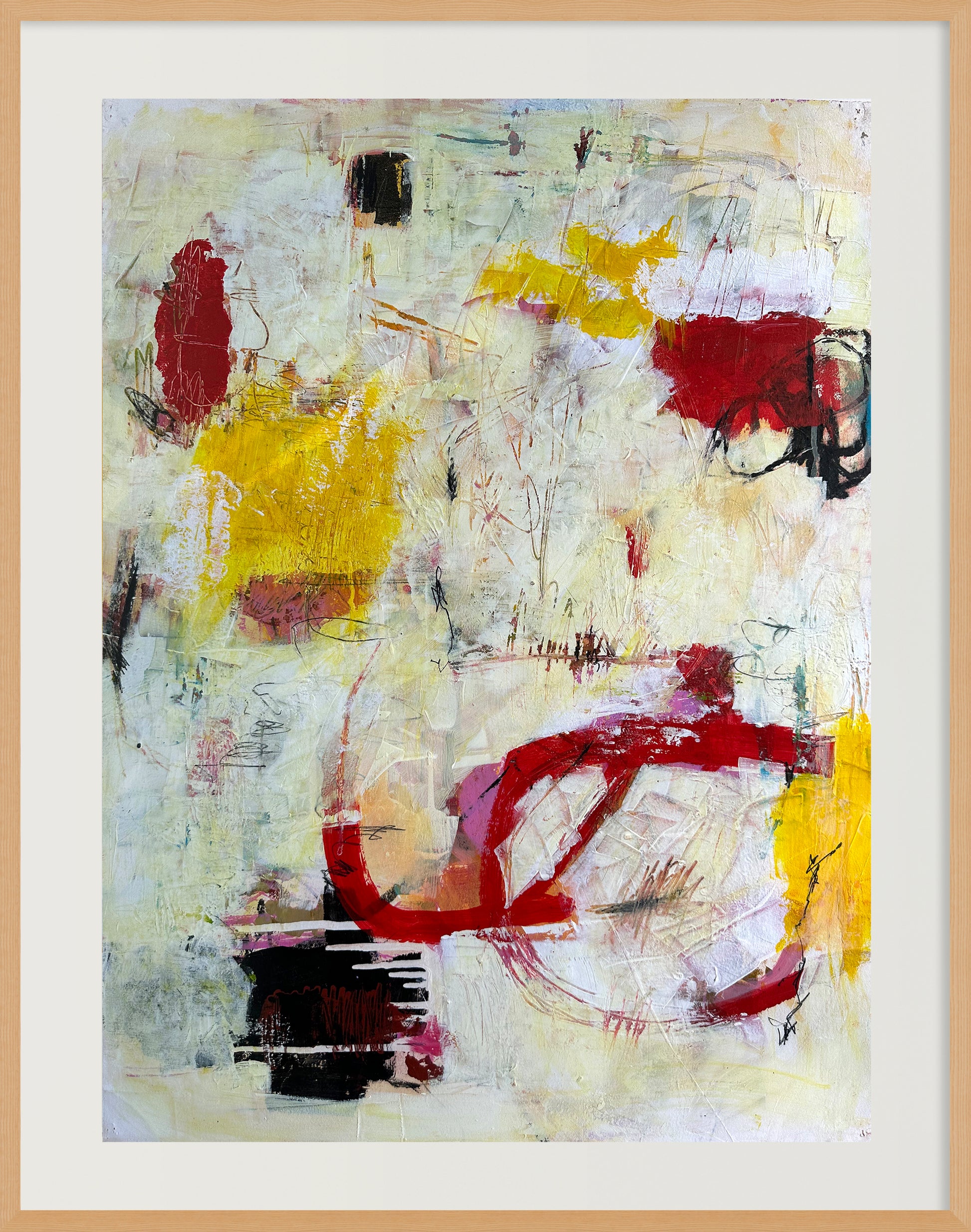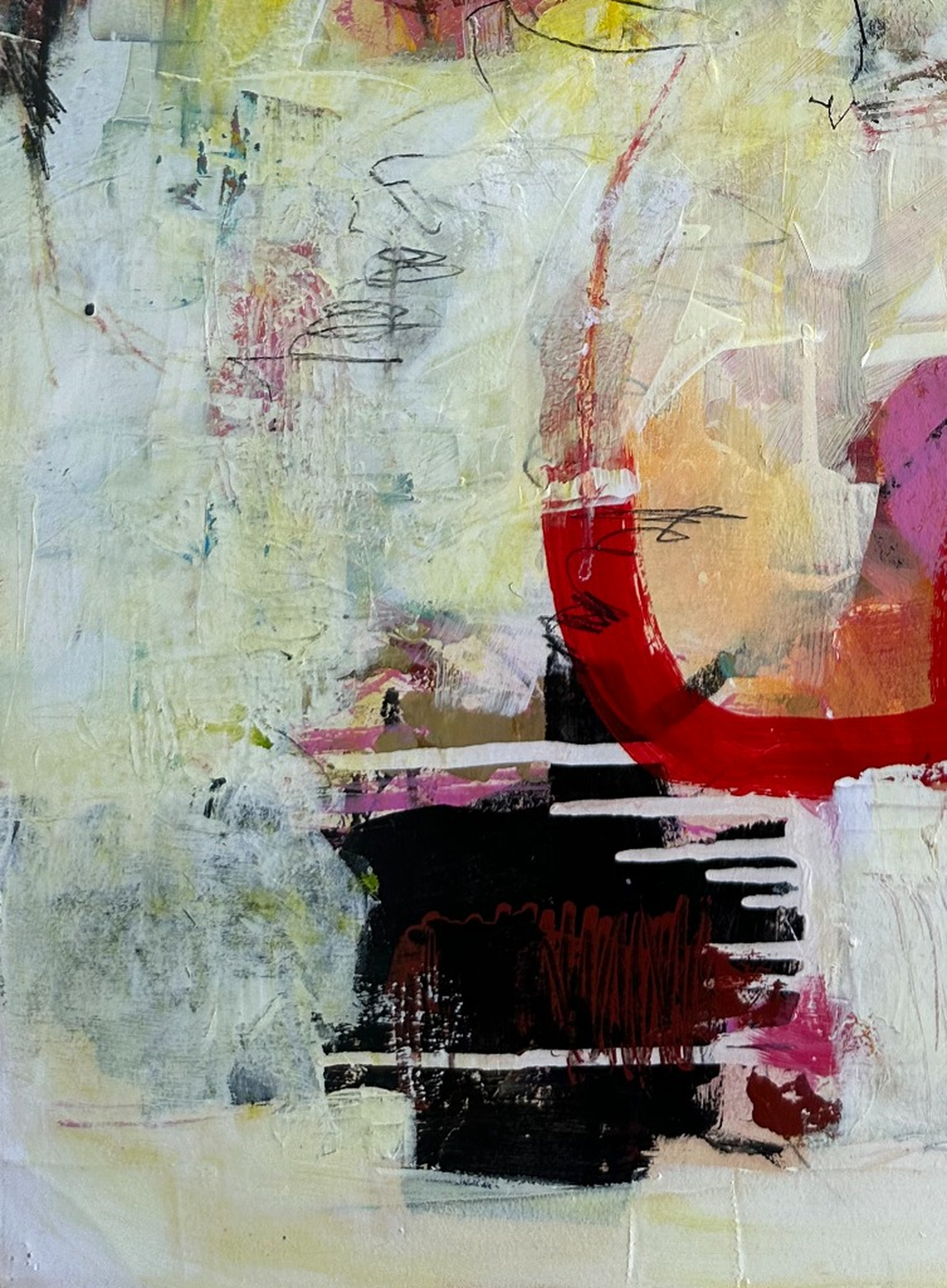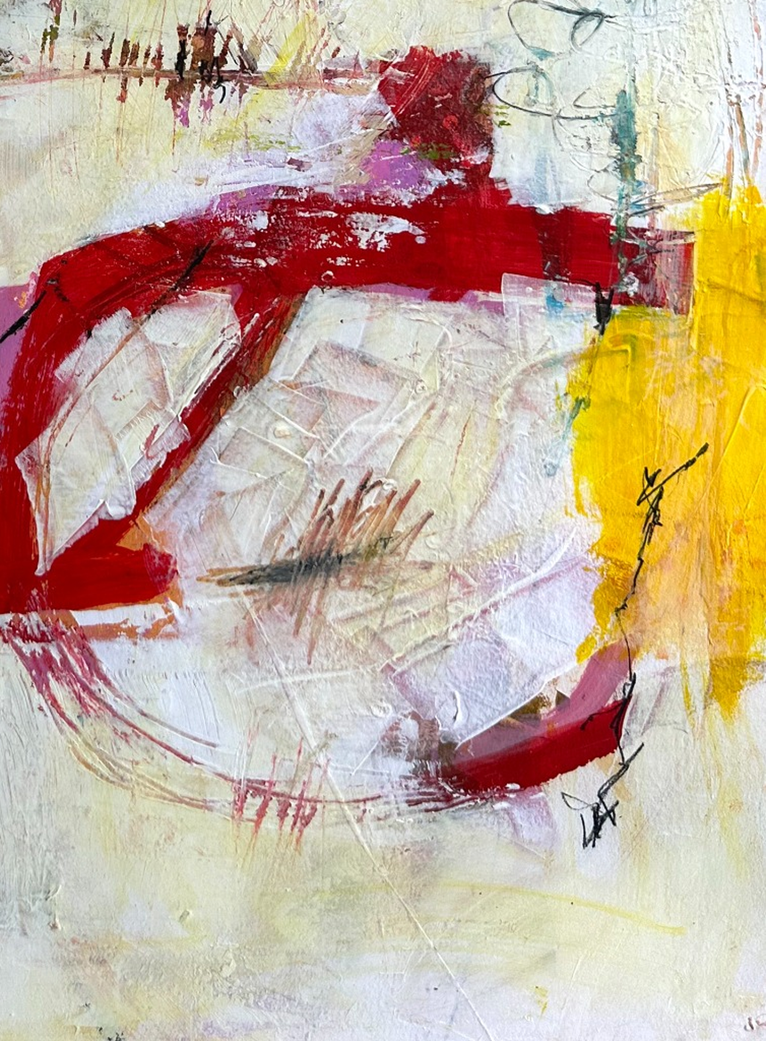 Christiane Corcelle is a French-American mixed media artist based in Massachusetts. Her intuitive, layered practice spans painting, printmaking, collage, and de-collage, building richly textured surfaces that invite close exploration. Guided by curiosity and openness to process, she transforms color, shape, and found materials into works that are both dynamic and contemplative.