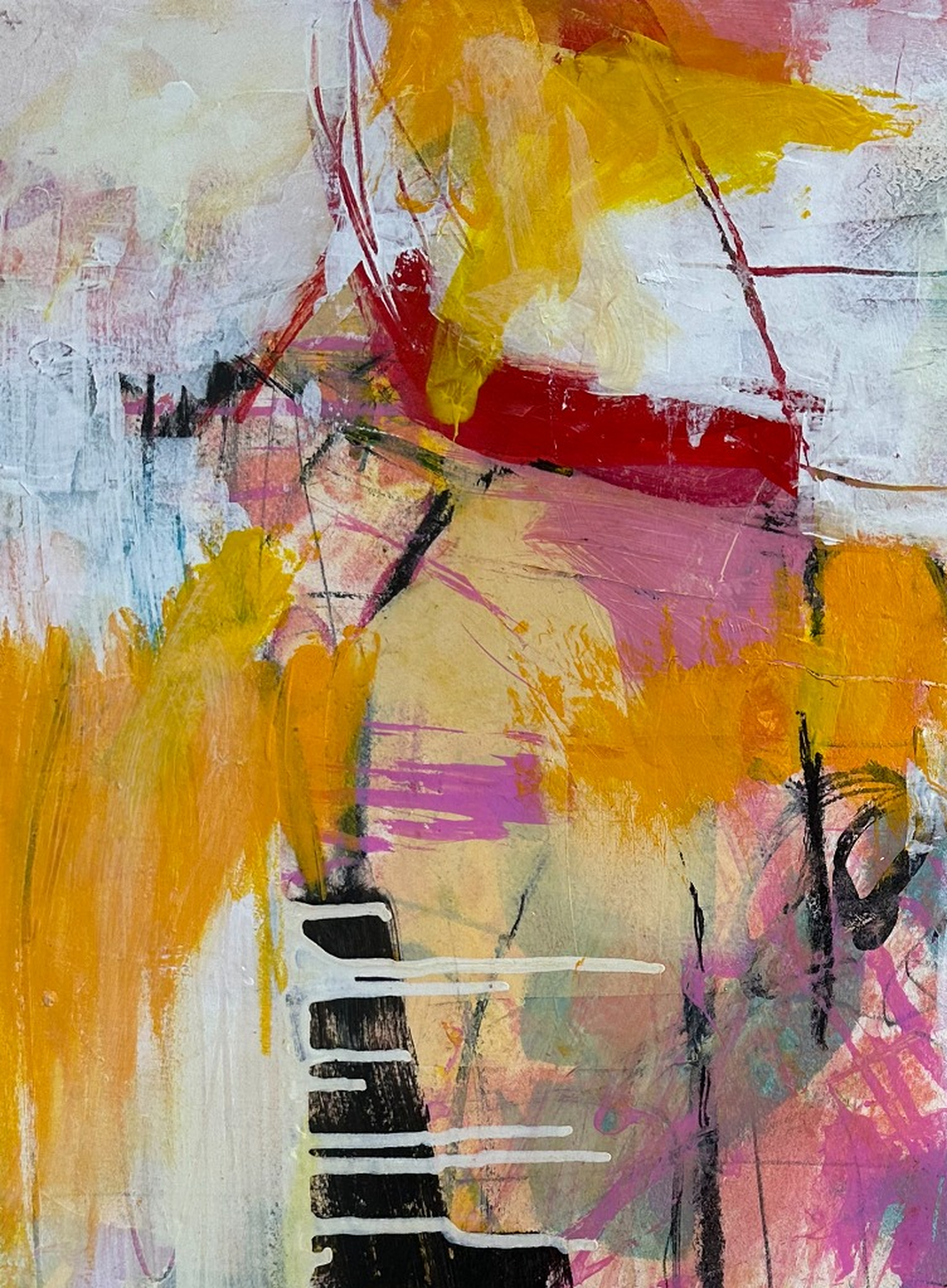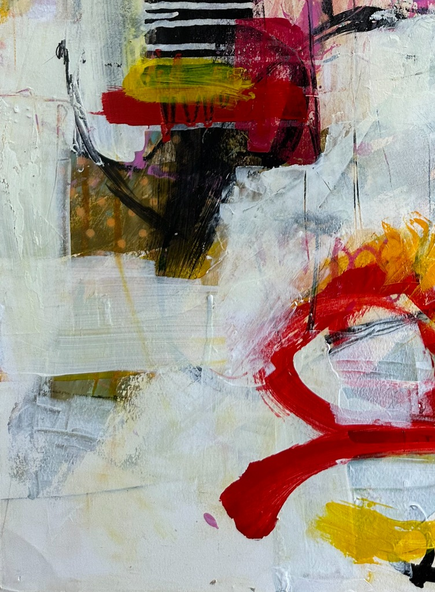 Christiane Corcelle is a French-American mixed media artist based in Massachusetts. Her intuitive, layered practice spans painting, printmaking, collage, and de-collage, building richly textured surfaces that invite close exploration. Guided by curiosity and openness to process, she transforms color, shape, and found materials into works that are both dynamic and contemplative.