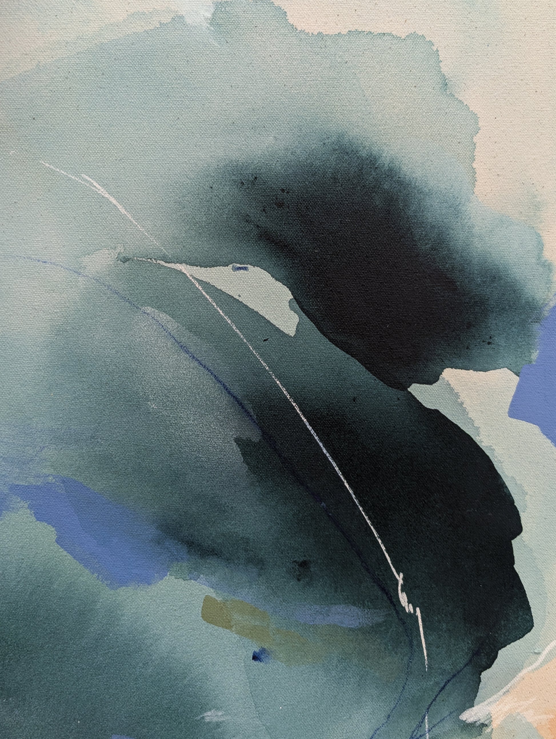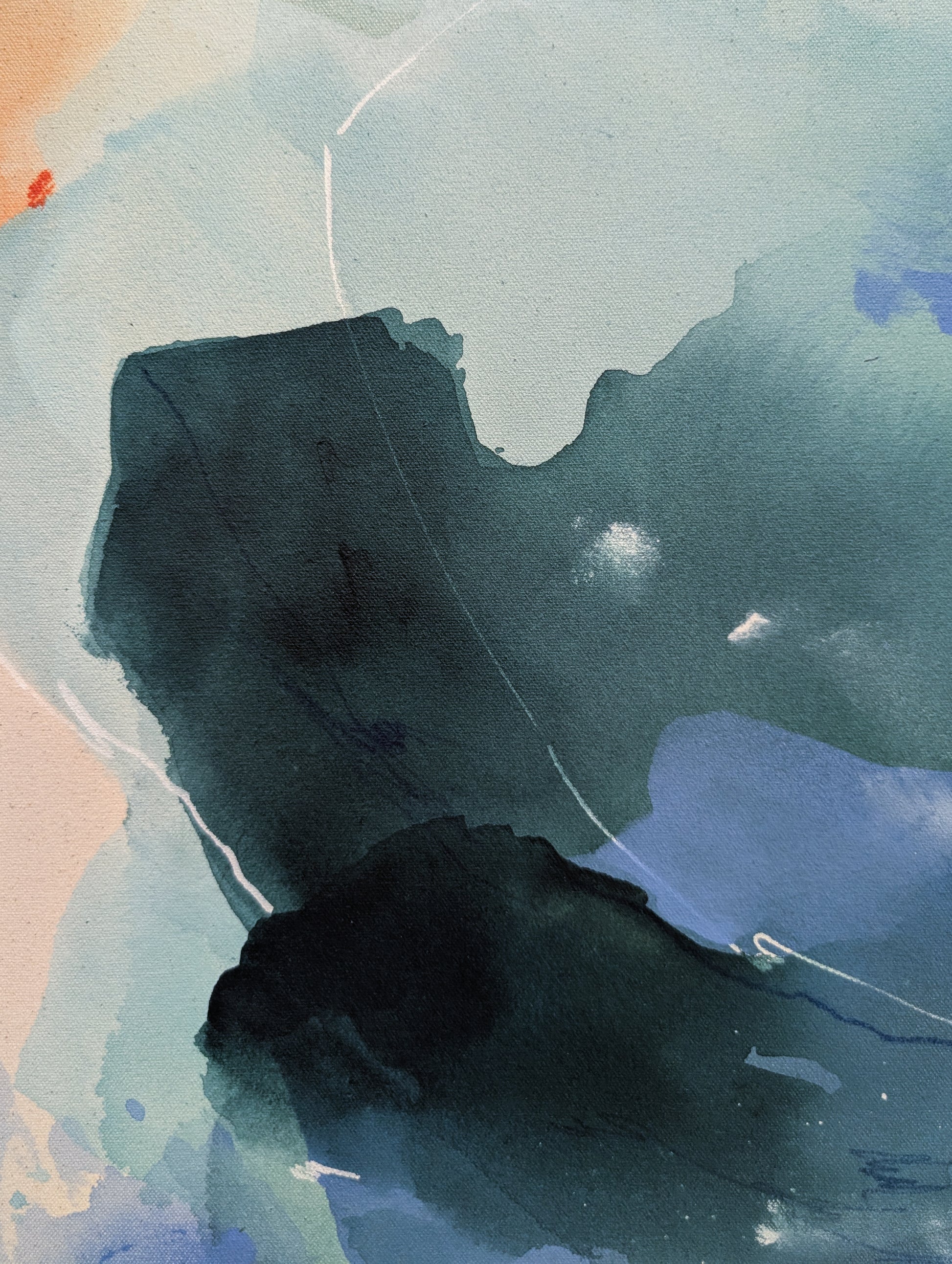 Her practice is guided by an intuitive process of mark-making, producing works that range from large-scale, gestural compositions to more intimate paintings. Through layered applications of color, Matos combines expressive, physical gestures with moments of restraint and carefully considered abstract imagery, allowing each work to evolve organically through the act of making.