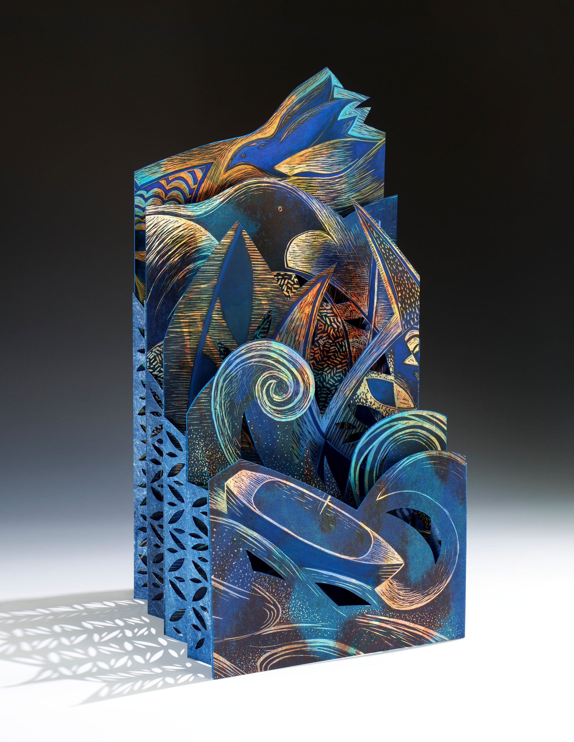 Tunnel Book, linocut, monotype, watercolor and gouache
