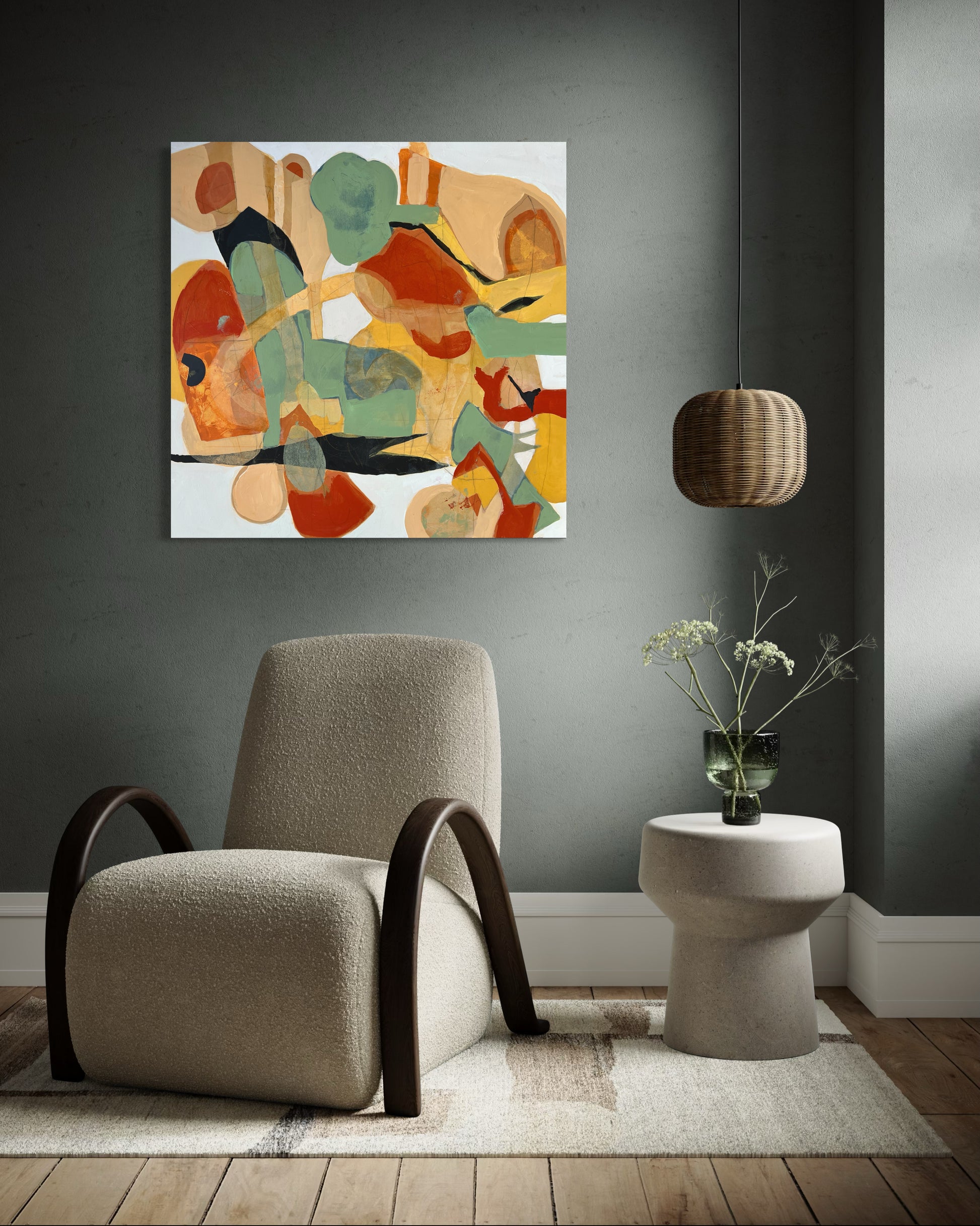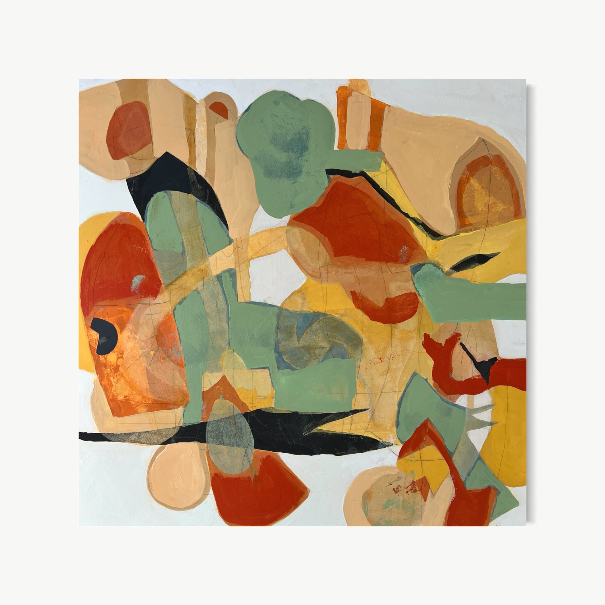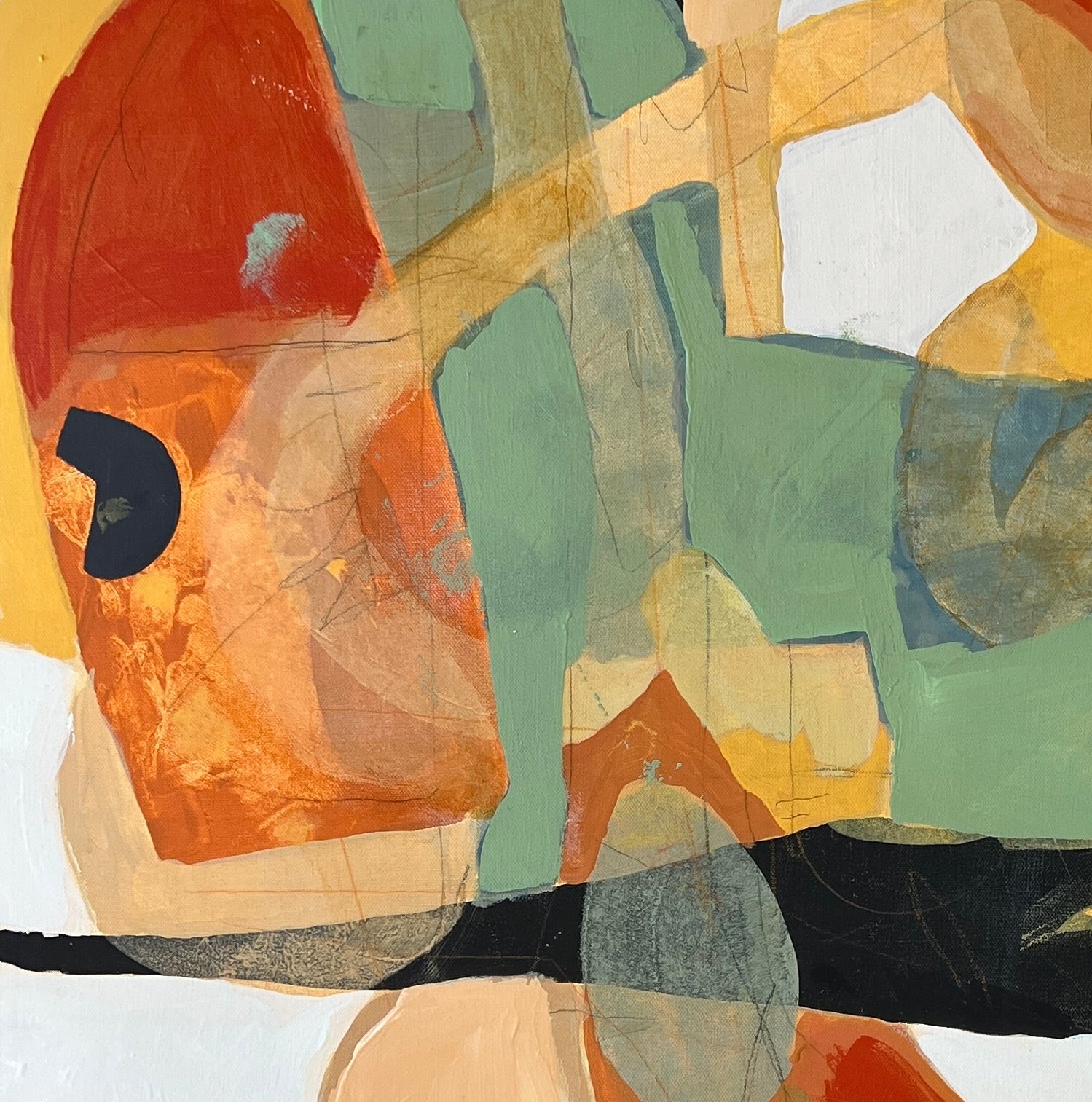 Cox’s practice is rooted in memory and impression, with each painting serving as a layered meditation on a moment, emotion, or lived experience. Working primarily in acrylic and collage, Cox approaches the canvas without a fixed plan. He builds depth and texture through an intuitive process of addition and subtraction, guided by memory and music. Music often triggers recollections that shape the composition, and as the work evolves, a specific memory gradually comes into focus. Cox continues to refine the surface until the emotional truth of the moment feels fully realized. His carefully chosen titles offer context while leaving space for open interpretation.