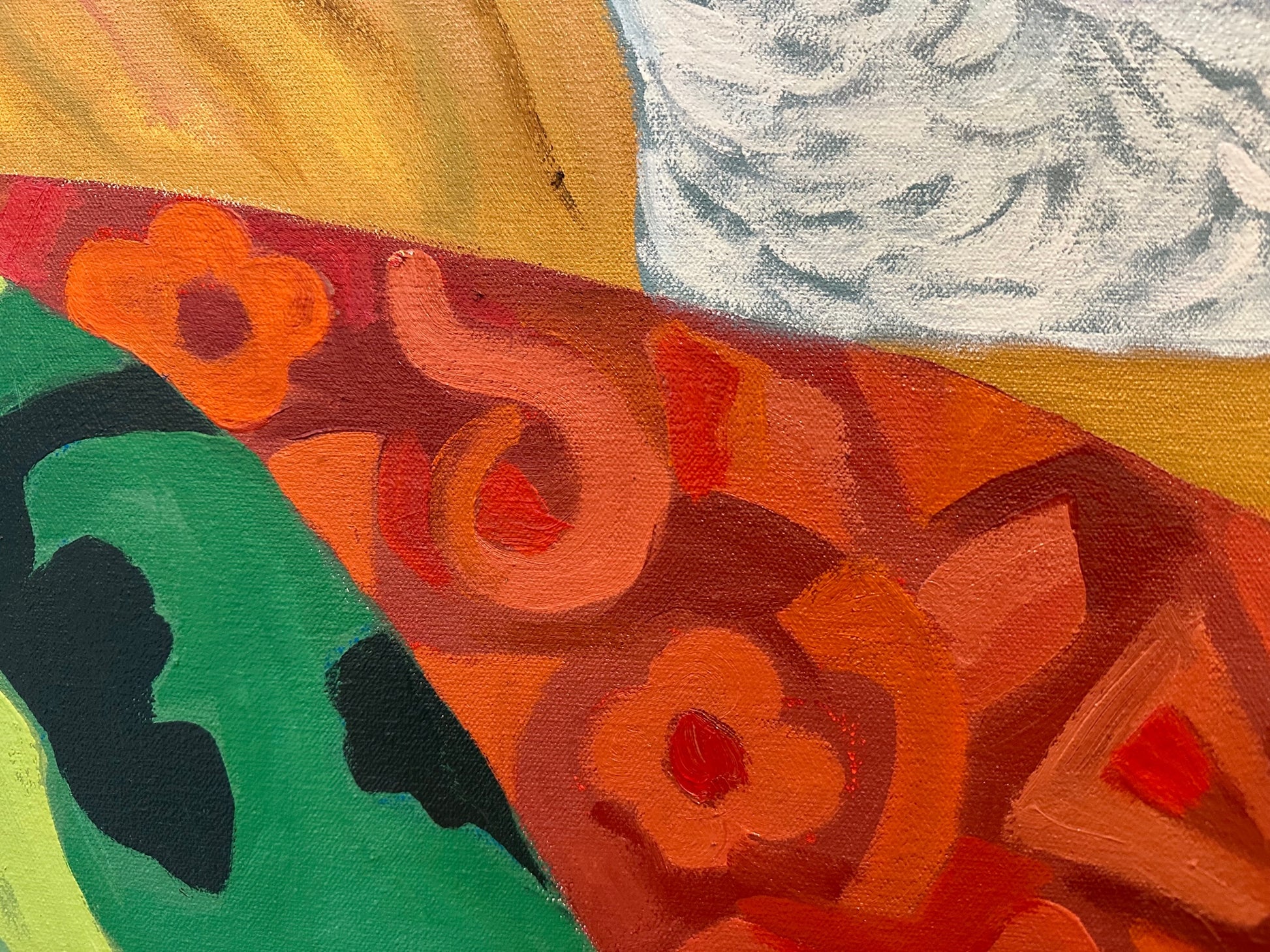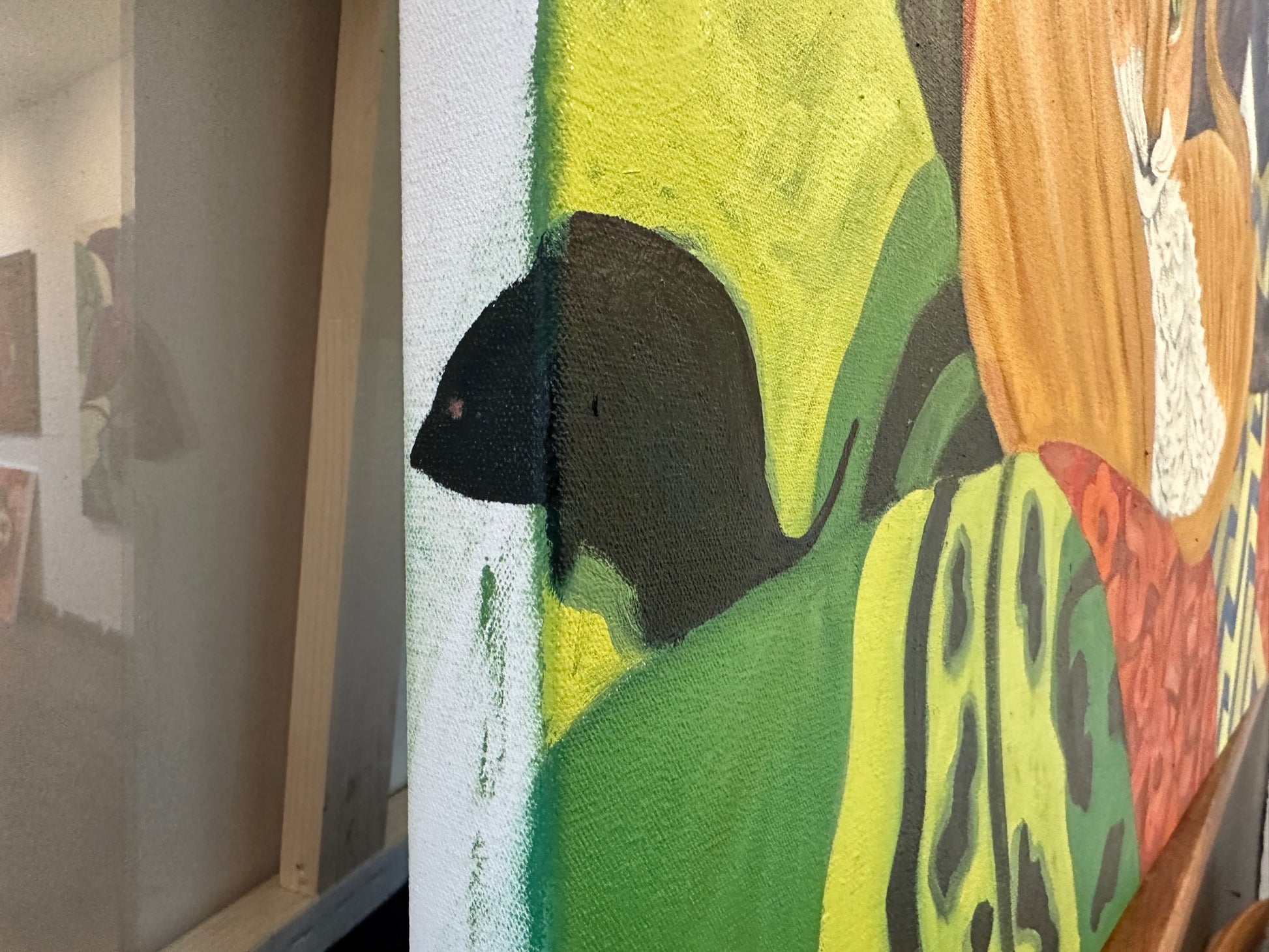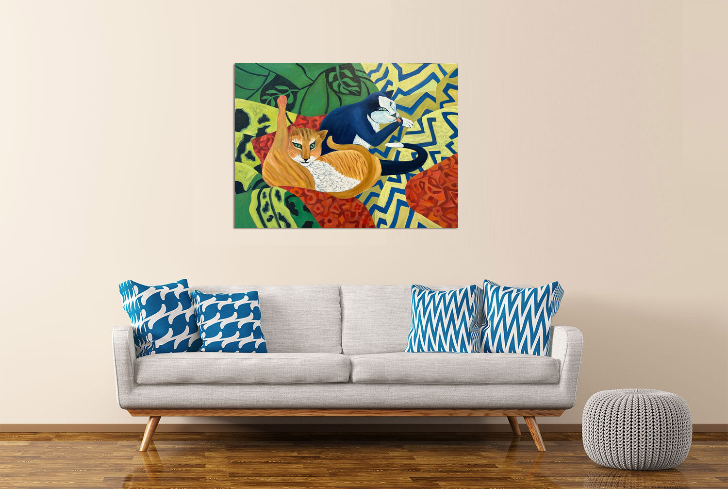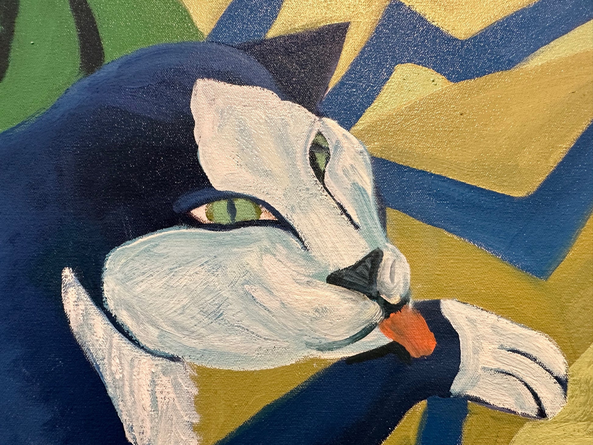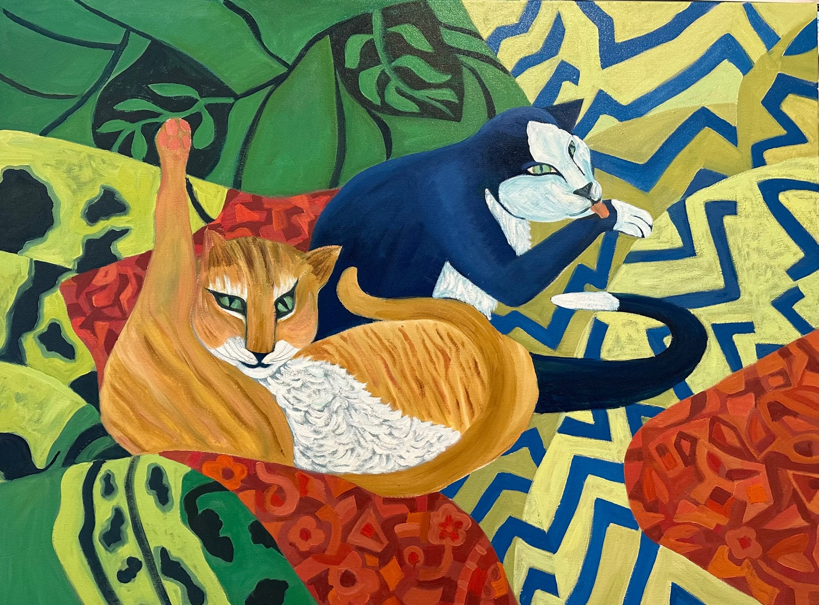 In this playful composition, Marc captures the relaxed, self-possessed nature of cats with both warmth and clarity. Having lived with cats for many years, he understands their quiet confidence and subtle humor, and that familiarity comes through naturally in the painting.