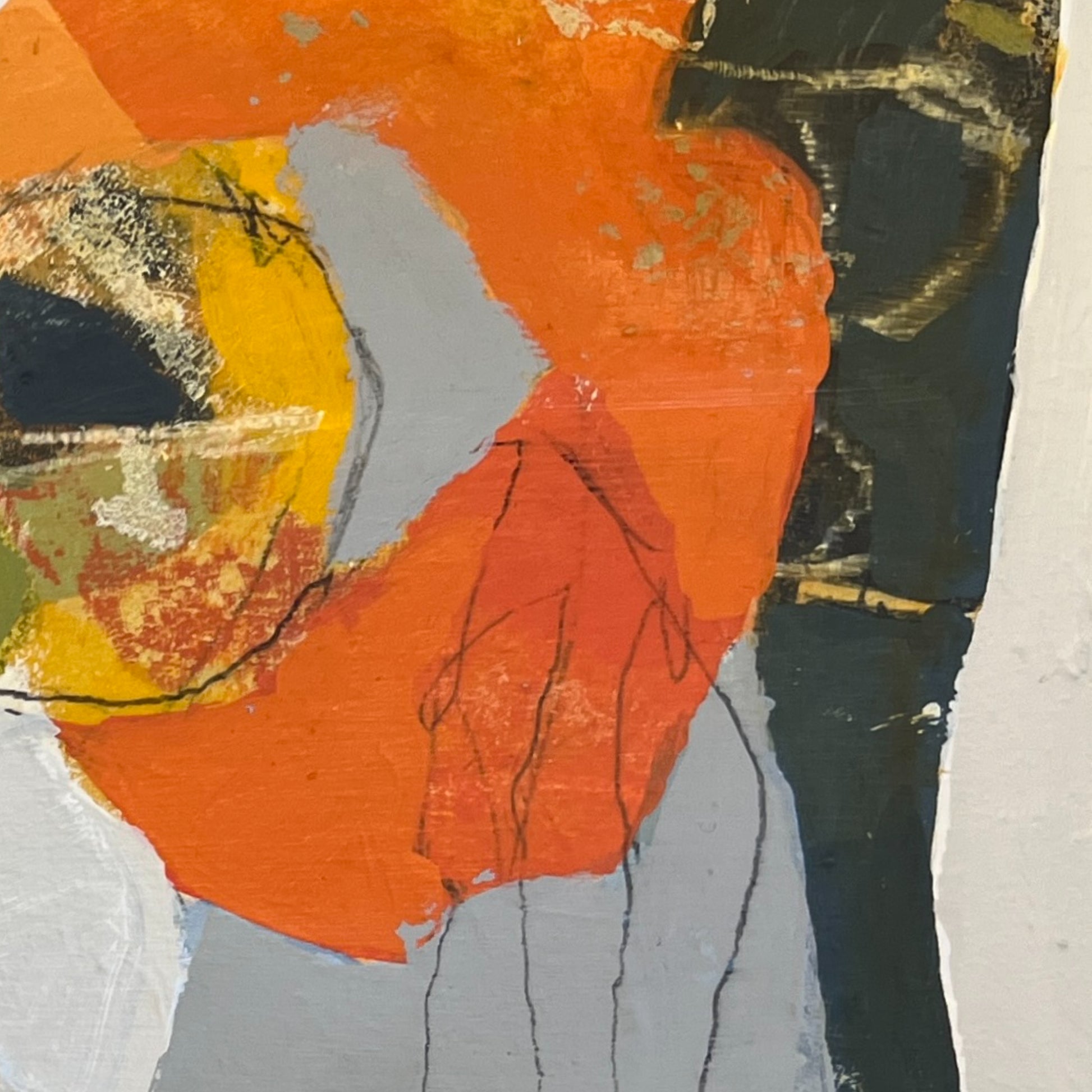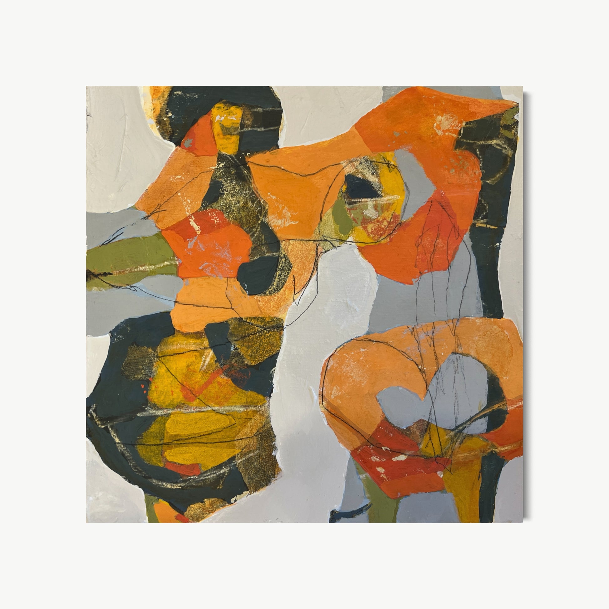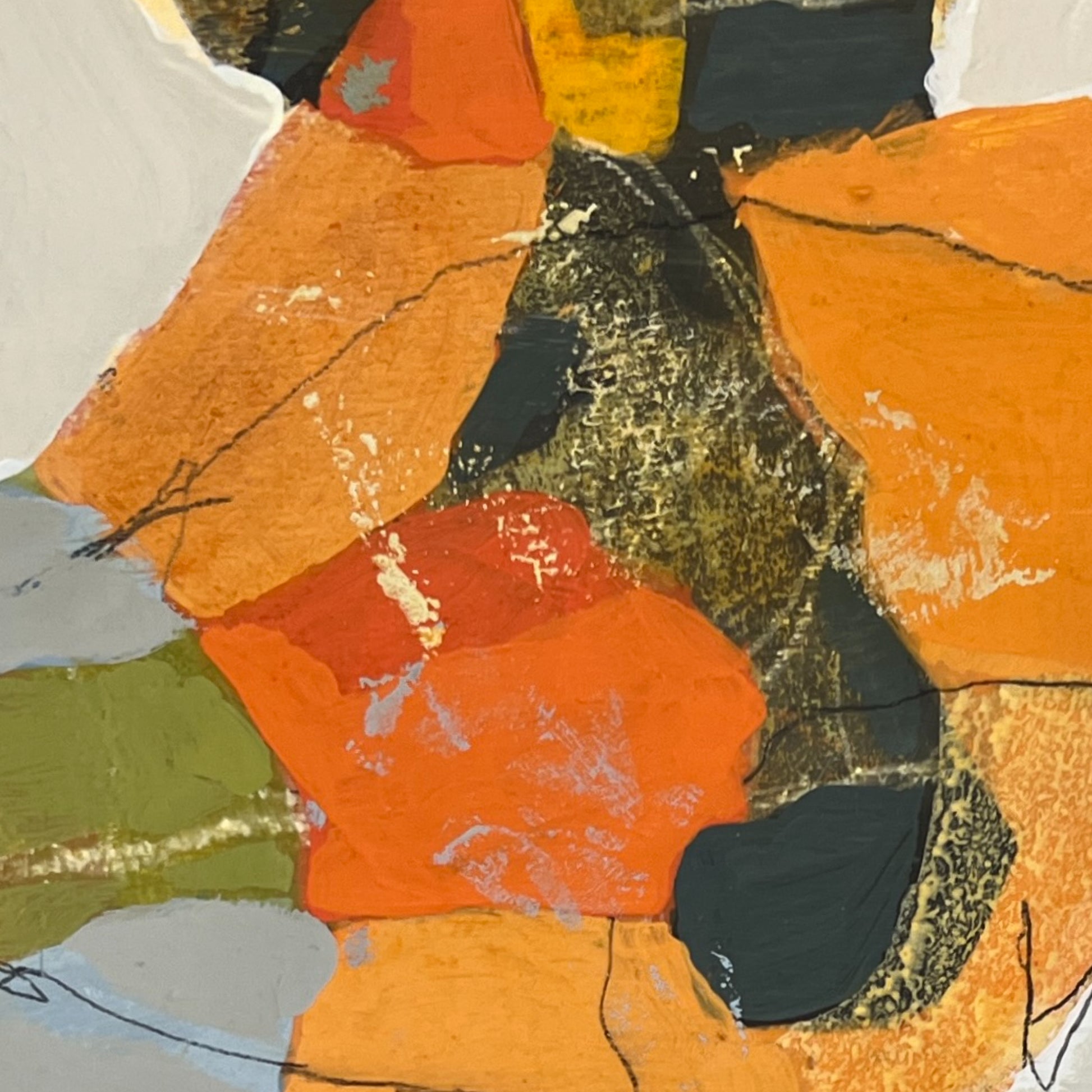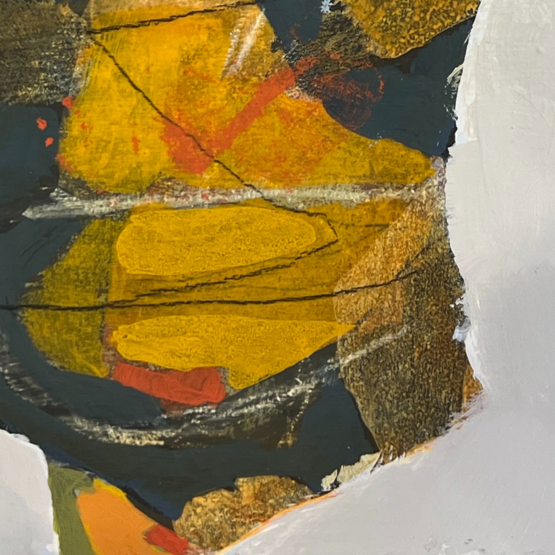 Cox’s practice is rooted in memory and impression, with each painting serving as a layered meditation on a moment, emotion, or lived experience. Working primarily in acrylic and collage, Cox approaches the canvas without a fixed plan. He builds depth and texture through an intuitive process of addition and subtraction, guided by memory and music. Music often triggers recollections that shape the composition, and as the work evolves, a specific memory gradually comes into focus. Cox continues to refine the surface until the emotional truth of the moment feels fully realized. His carefully chosen titles offer context while leaving space for open interpretation.