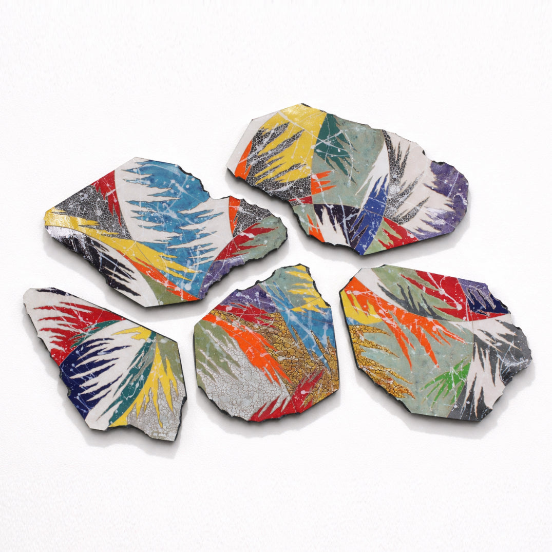 Inspired by Joan Miró, Pablo Picasso, Wassily Kandinsky, Piet Mondrian, and Jackson Pollock, Gustavson’s surfaces often feature controlled dripping and expressive movement, translating the energy of abstract painting into fired clay.
