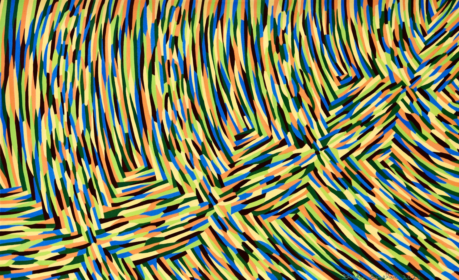 Gordon Sizelove (American, b. 1953) is a San Francisco–based painter whose geometric forms and vivid chromatic fields explore universal themes of perception, movement, and connection. Working in acrylics, pastels, charcoal, and pencil, he constructs enigmatic interlocking patterns - shapes that seem to shift between biomorphic organisms viewed through a microscope, the mottled textures of a forest floor, or objects drifting through deep space. Influenced by contemporary developments in art, architecture, and science, Sizelove’s visual language is distinctly his own.