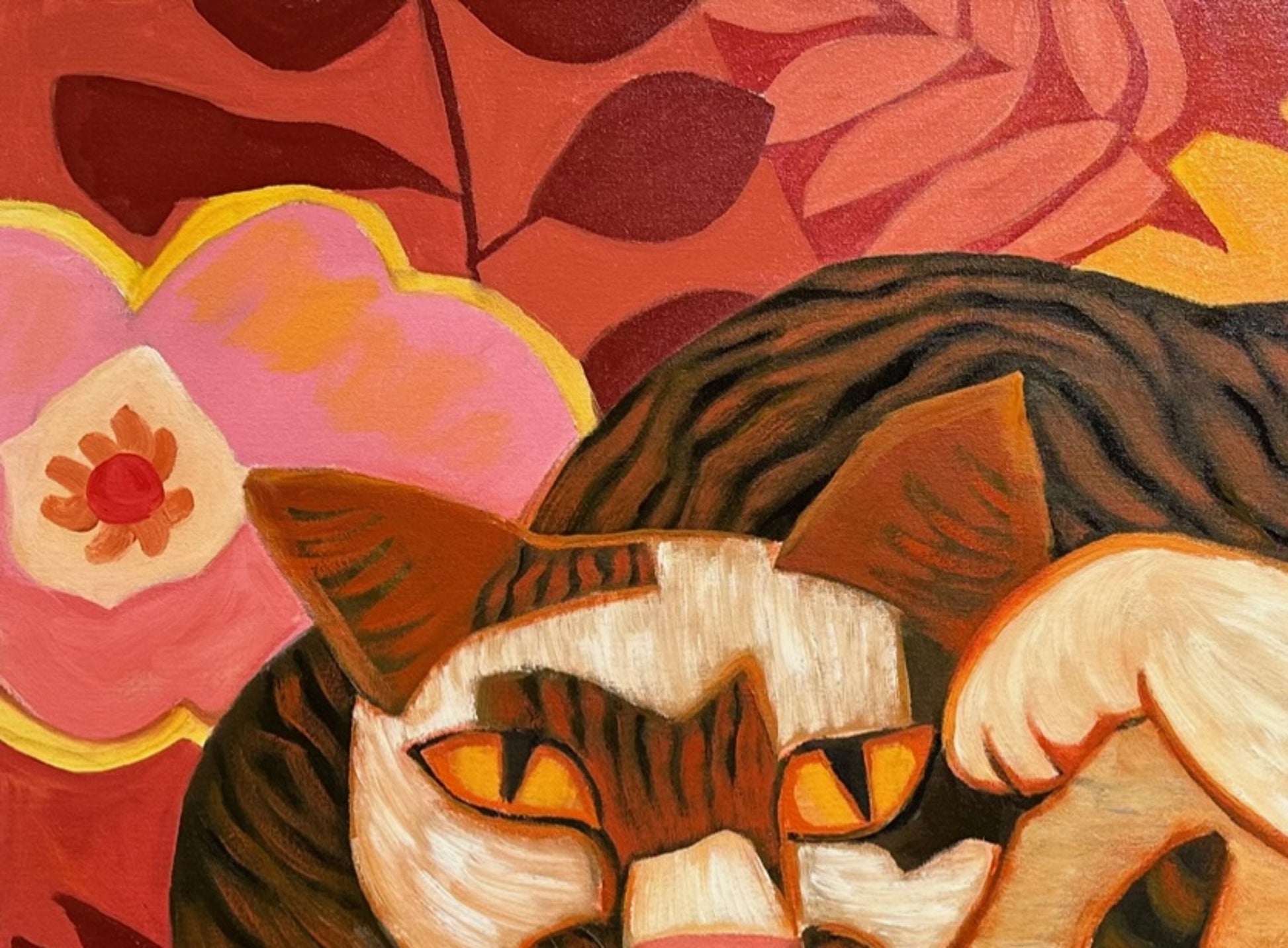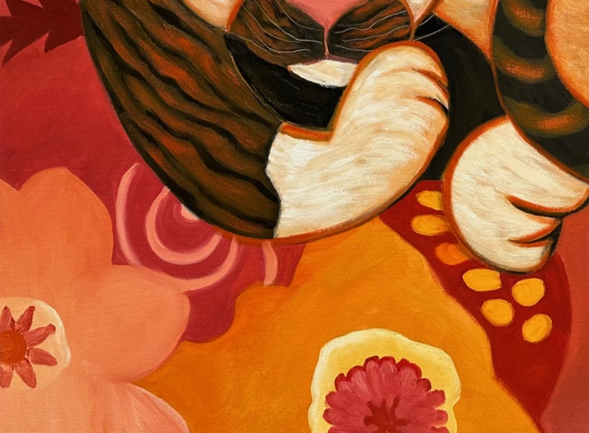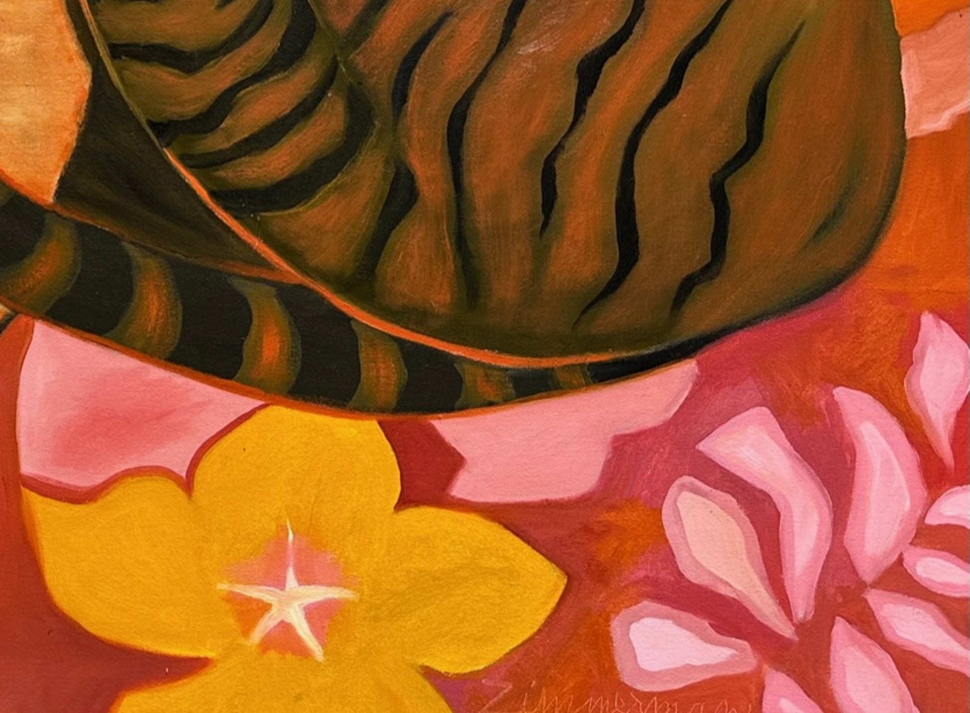 Zimmerman’s distinctive vocabulary was shaped early through his work in woodcut printmaking, which instilled the crisp edges and compositional clarity that continue to anchor his paintings today. His lush, immersive environments draw inspiration from the dreamlike worlds of Henri Rousseau and Paul Gauguin, while extended periods living and painting in Kauai, Hawaii, as well as time in Mexico and Europe, infused his work with the saturated light and rhythmic vitality that define his celebrated Jungle and Tropical Fantasy Floral series.