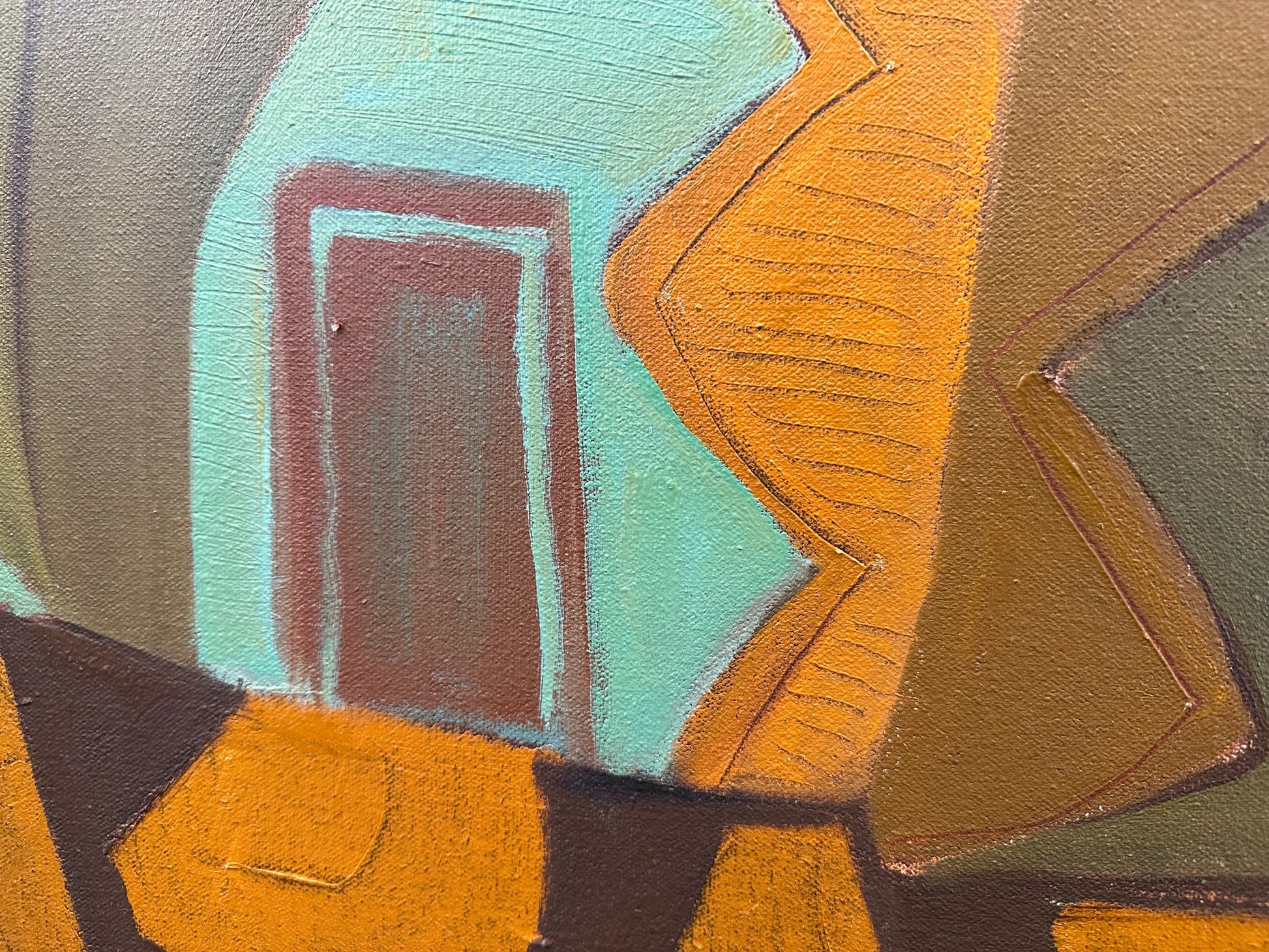 His color choices are confident but balanced, allowing the composition to feel lively without becoming overwhelming. You can also see the influence of his background in printmaking in the clarity of the shapes and the way each form is carefully defined.