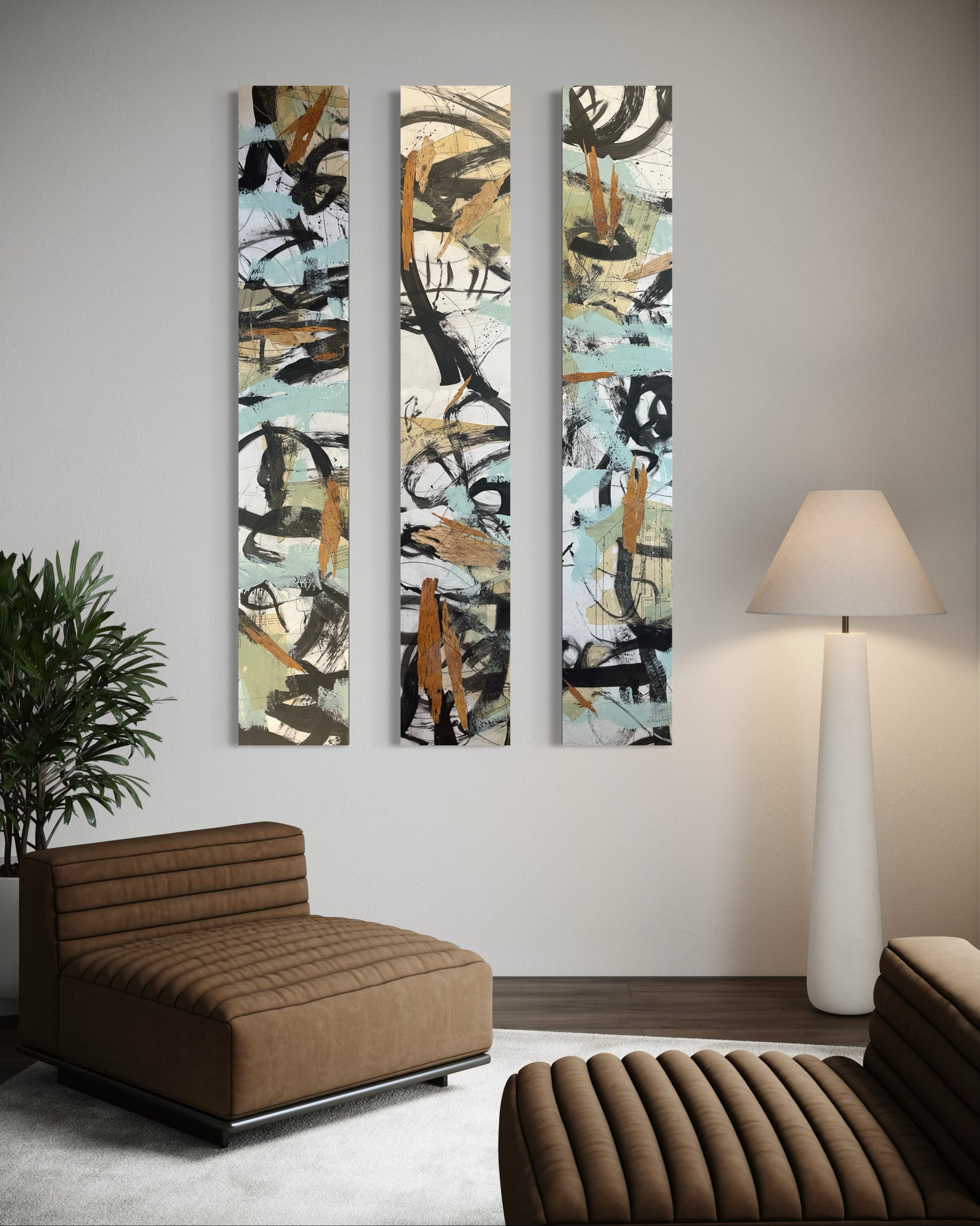 The work may be installed vertically or horizontally, and can be presented as a single piece, a diptych, or a triptych (Whispers of the Forest 4, 5, & 6).