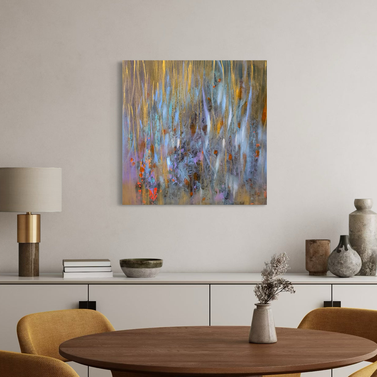 Mary Titus (b. 1950, Florida) is a Carmel-based abstract painter celebrated for her adventurous spirit and singular vision. A lifelong artist, she began selling her work at 13 and, since moving to Carmel in 1983, has become recognized as one of the region’s foremost abstract painters. Her works, layered with collage, rice paper, and textured pastes, embody a vibrant, one-of-a-kind quality where each piece is a unique statement that resists repetition.